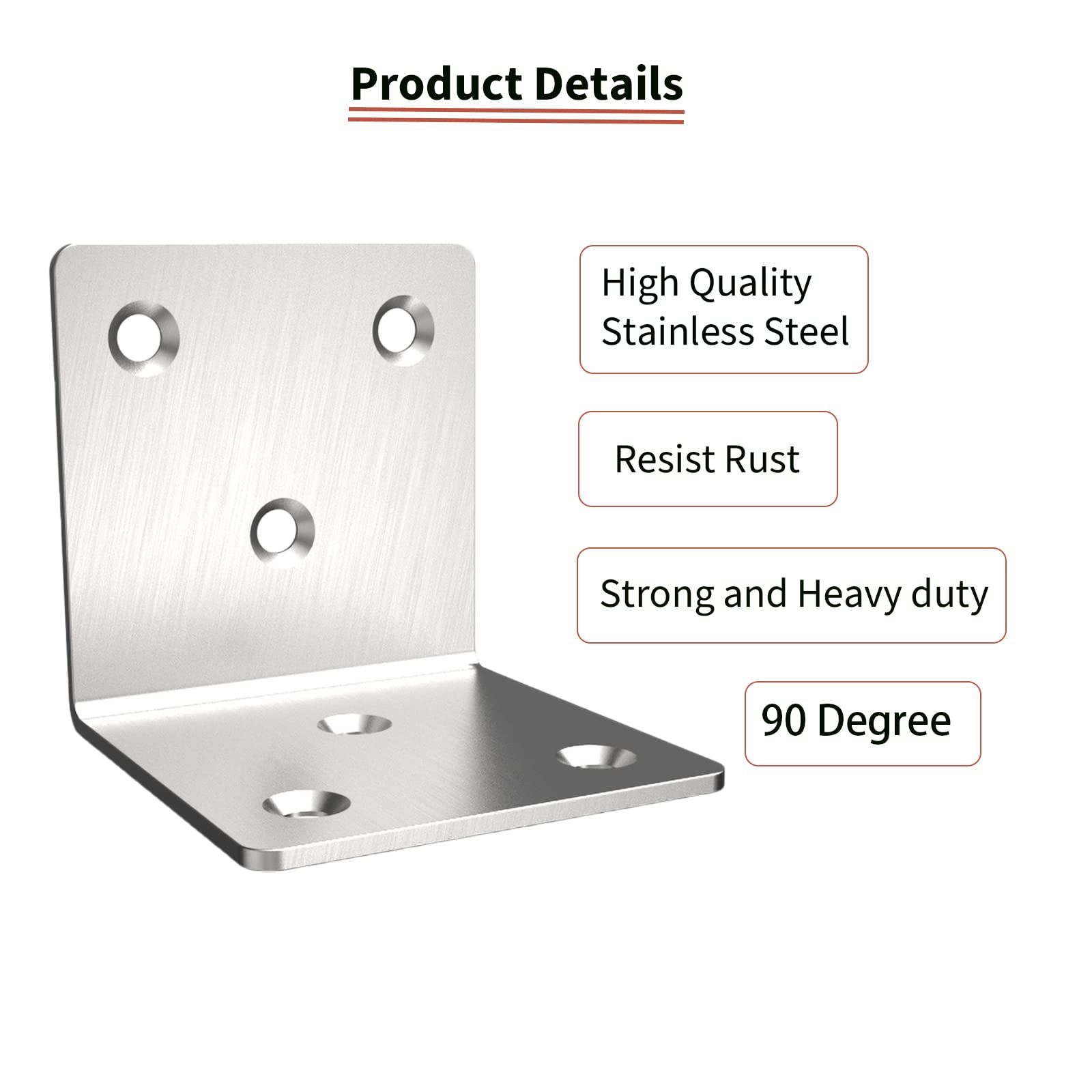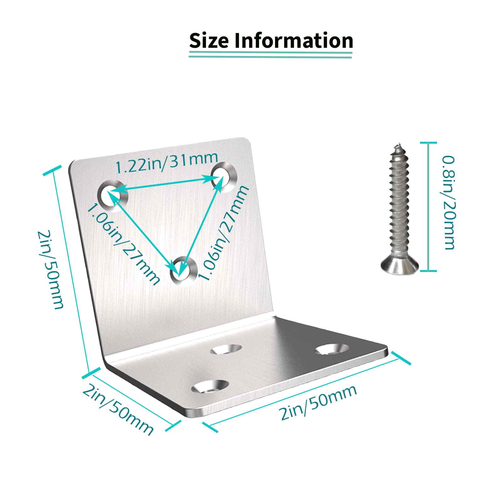 Silver Stainless Steel Corner Bracket,Joint Right Angle Bracket,L Shape Heavy Duty Metal Corner Brace Shelf Supporter for Wood Aufuga (10, 2x2x2)