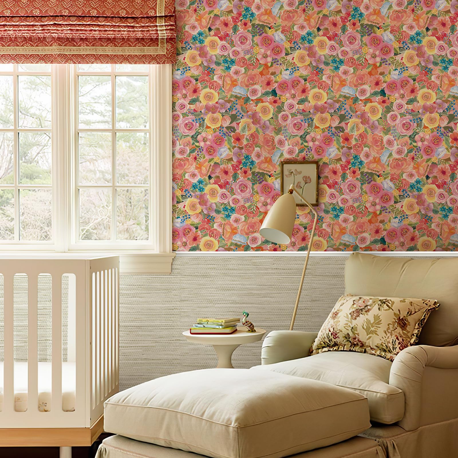 Simon&Siff Floral Peel and Stick Wallpaper 17.3"x80" Pink Watercolor Flowers Wall Murals Removable Wall Paper for Bedroom Bathroom Cabinet Renter Friendly