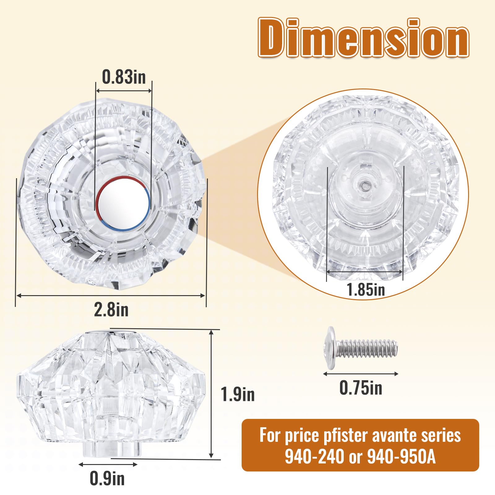Single Shower Faucet Handle Replacement for Price Pfister Style Avante Series 940-240 or 940-950a, Clear Acrylic Shower Knob Replacement use for Bathroom Sink (940-950A)