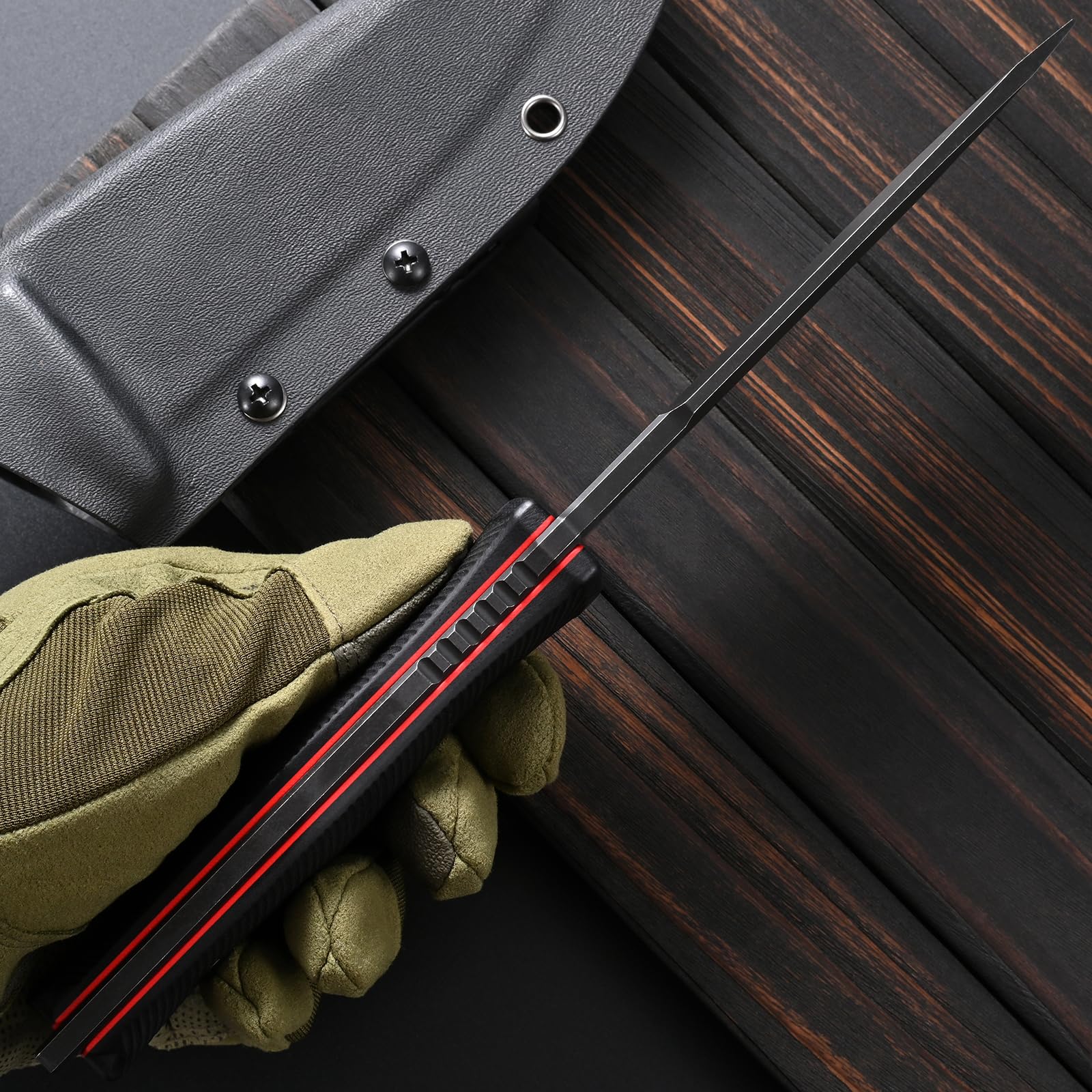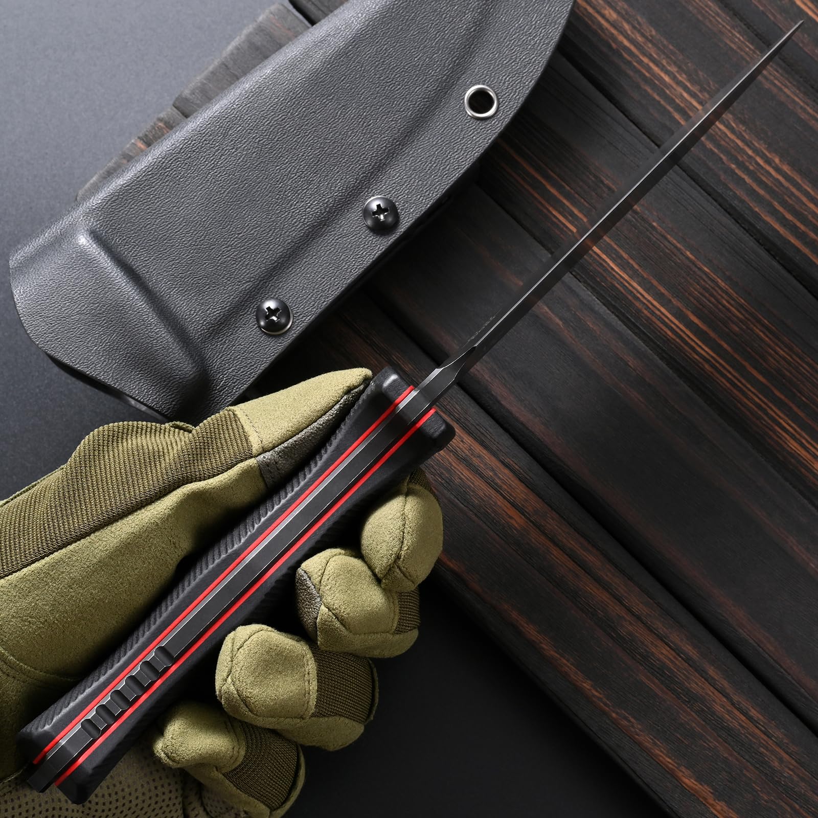 - This high-strength, lightweight knife sheath is crafted from imported Kydex material, renowned for its heat and corrosion resistance. It provides exceptional retention for both vertical and horizontal carry, featuring an adjustable clip for secure belt attachment.