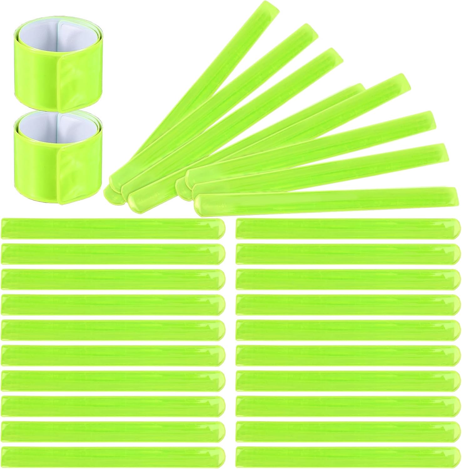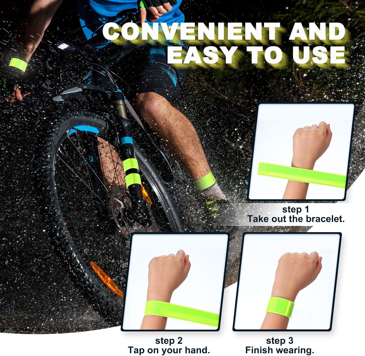 - MATERIAL: Reflective strips are made of alloy and reflective PVC, durable enough to reflect light in low light conditions; Waterproof fluorescent slap bracelets reflect well in rain, snow and cold winter. No batteries required. Highly reflective slap bracelets are visible, reusable and safe in all weather.