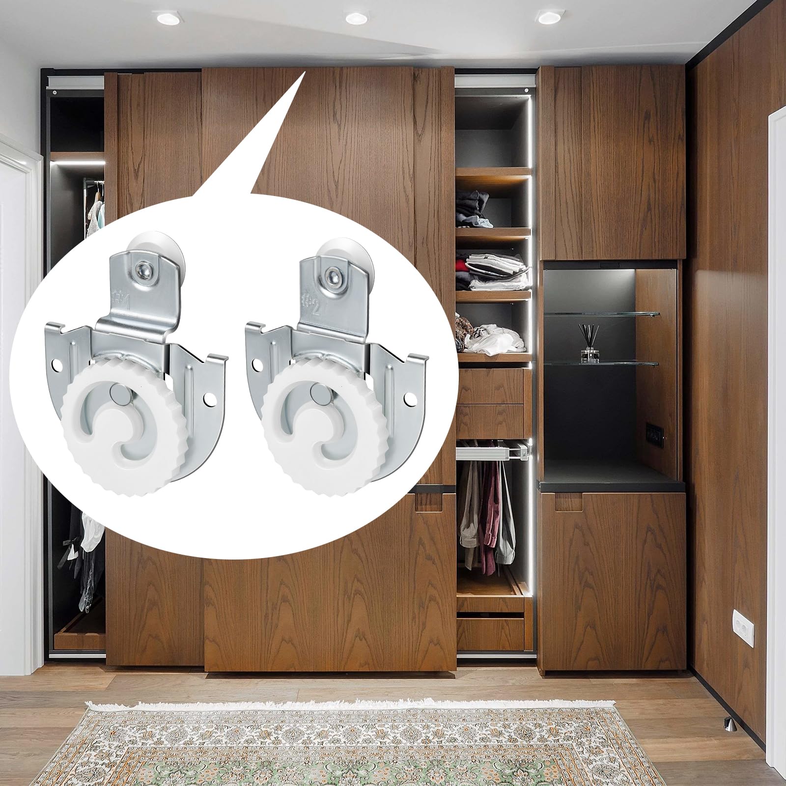 Sliding Closet Door Hardware Set, Sliding Wardrobe Door Hardware Roller Kit Includes Knob Adjustable Door Hooks and Screws