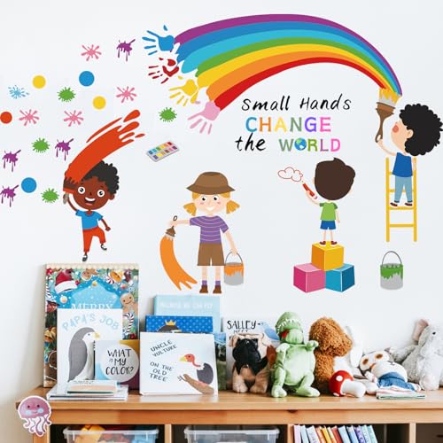 Small Hands Change The World Wall Stickers Inspirational Quote Rainbow Wall Decals for Kids Room Playroom Classroom School Library Wall Decor
