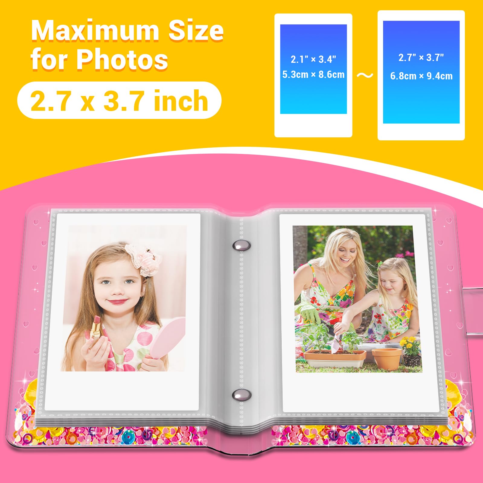 - 【Mini Photo Size】Each storage compartment of the album is 2.6 * 3.7 inches (6.5 * 9.5 centimeters), which can hold most of the photos taken by most Mini cameras on the market. With 30 pages in total, it can hold up to 60 photos(2 photos inserted back to back in each pocket)