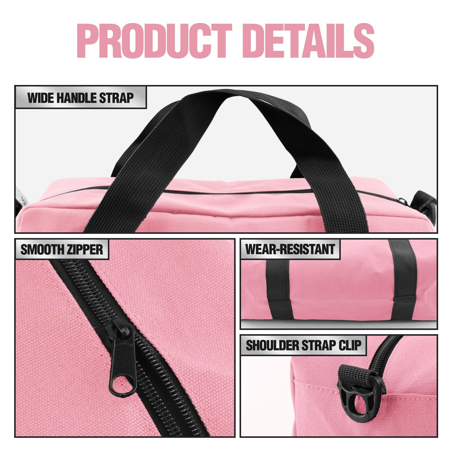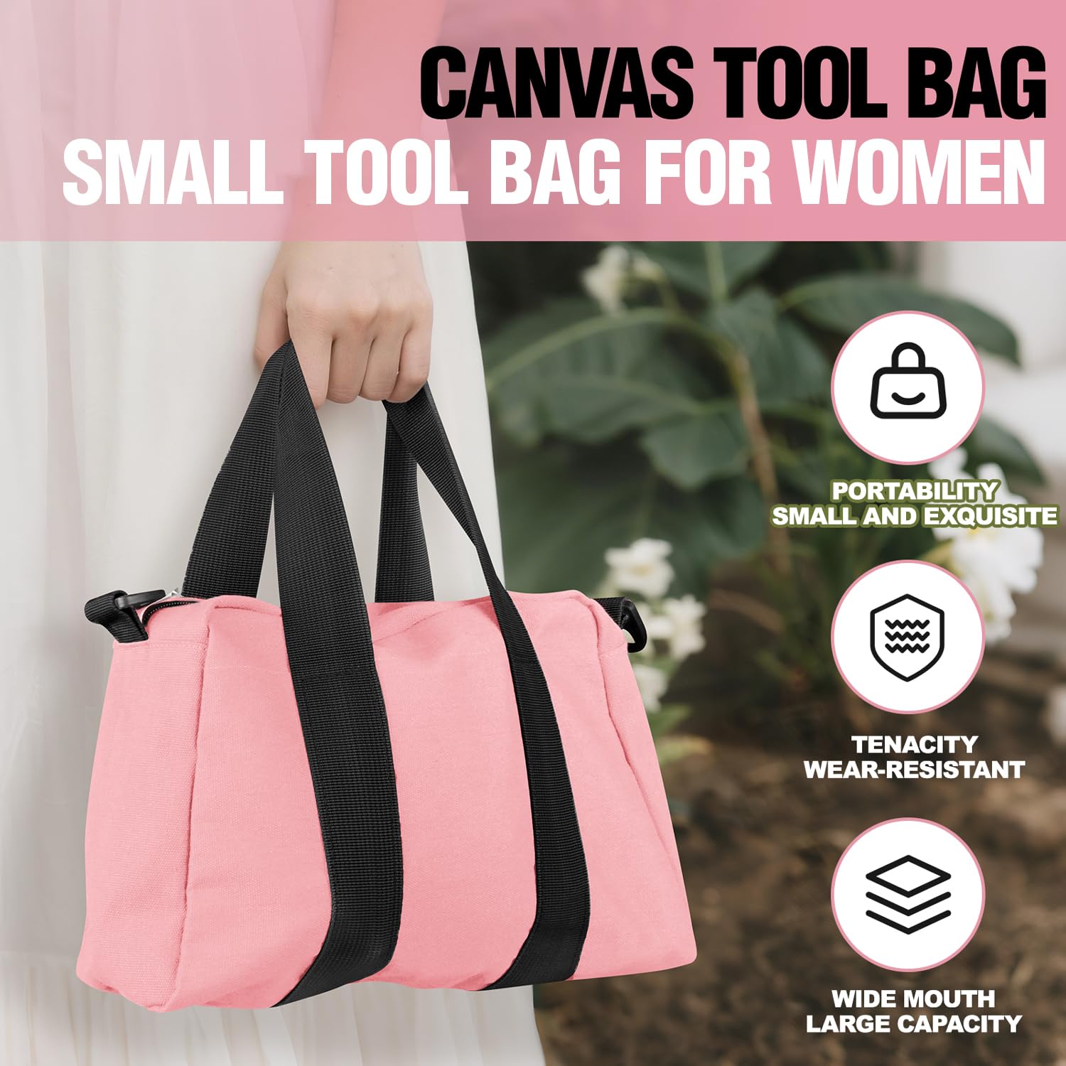 Small Tool Bag, Canvas Tool Storage Bag, Large Capacity Multipurpose Zipper Soft Tote Organizer Pouch for Electrician, Plumbing, Gardening,Tools Bags for Men (Pink, 13 Inch)