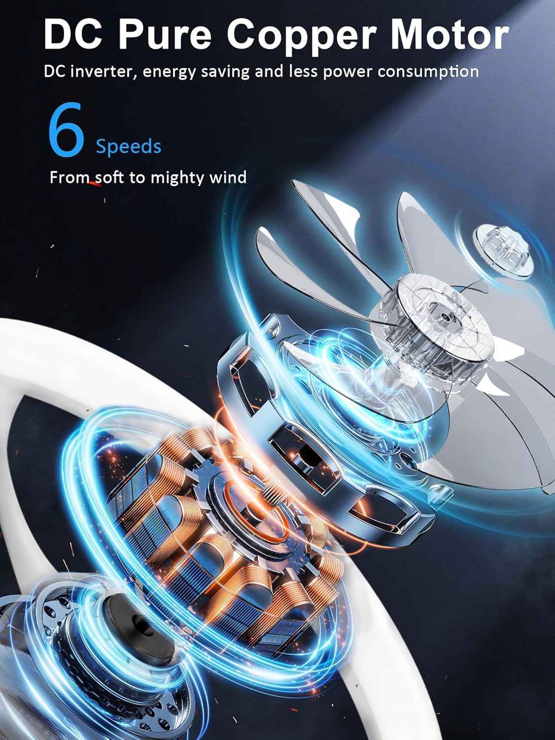 - 【Reversible Motor & 6 Wind Speed】Our ceiling fan provides 2 airflow modes. It runs downdraft cool airflow during summer and updraft airflow during winter to aid in rotating warm air, promoting air circulation and saving energy.Ceiling fans with lights and remote provides six distinct speed options, enabling you to select the perfect airflow intensity for your comfort preferences. Low noise design creates a comfortable living environment, and improves the quality of sleep.