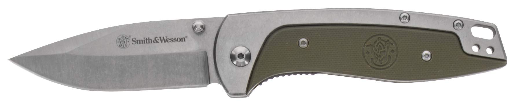 Smith & Wesson Freighter 7.6in High Carbon S.S. Folding Knife with 3.2in Drop Point Blade and Stainless/G10 Handle for Outdoor, Tactical, Survival and EDC