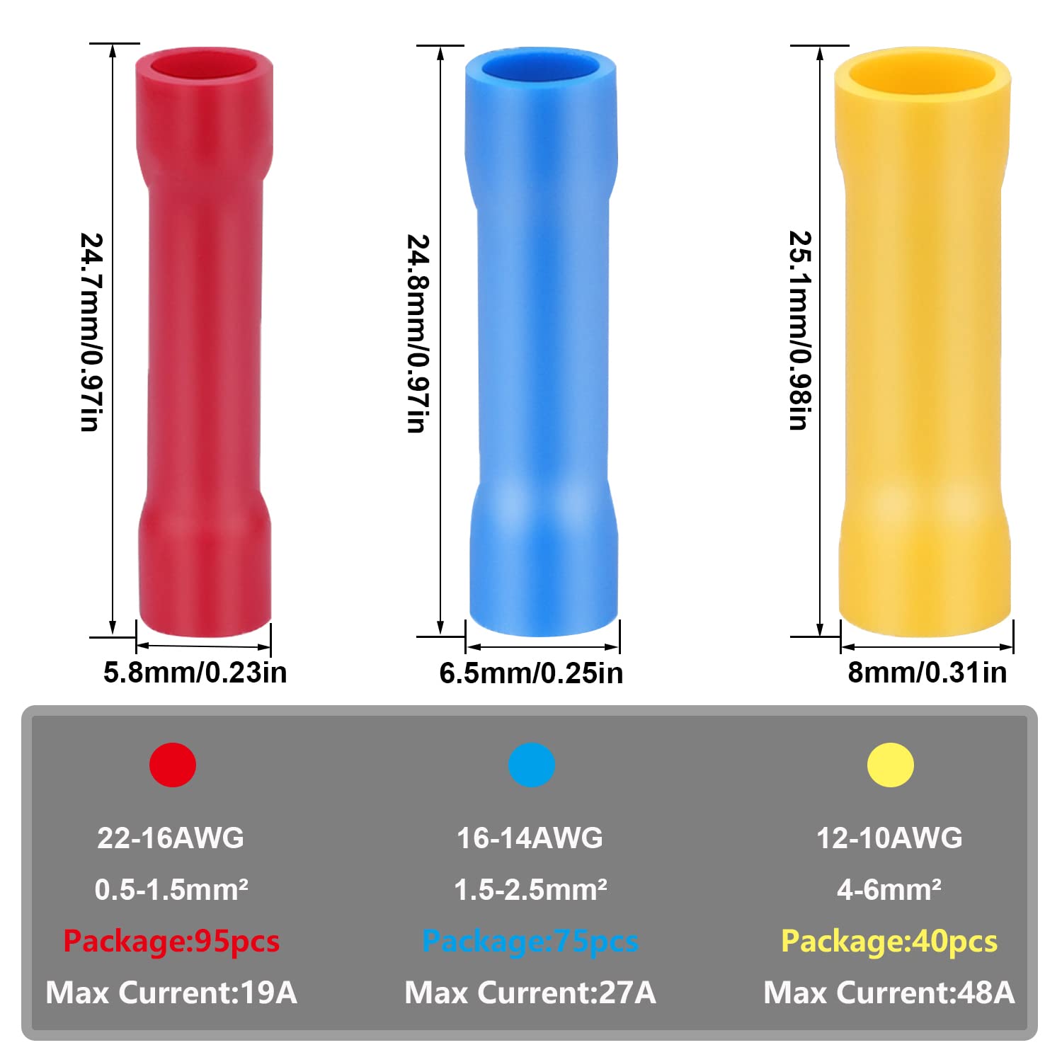 - Versatile and reliable: With a operating temperature of up to 105°C and a working voltage of 380V, these connectors are suitable for various electrical applications. Whether you're working on automotive projects or household repairs, these connectors have got you covered. Plus, the three colors—red, yellow, and blue—provide convenience and organization for all your wiring needs