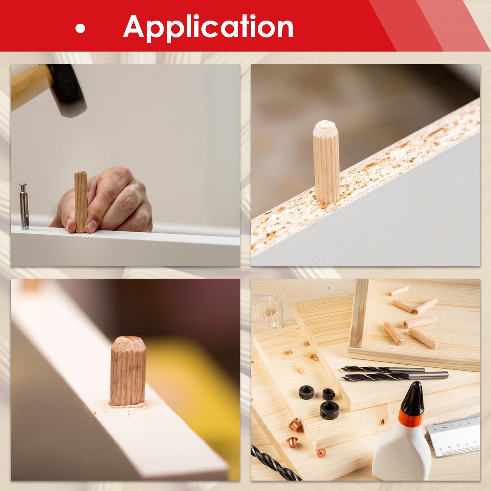 - Features: Slotted dowel pins have a larger surface area for the glue to adhere to, allowing for easy insertion and seamless bonding, better reinforcing the wood joint