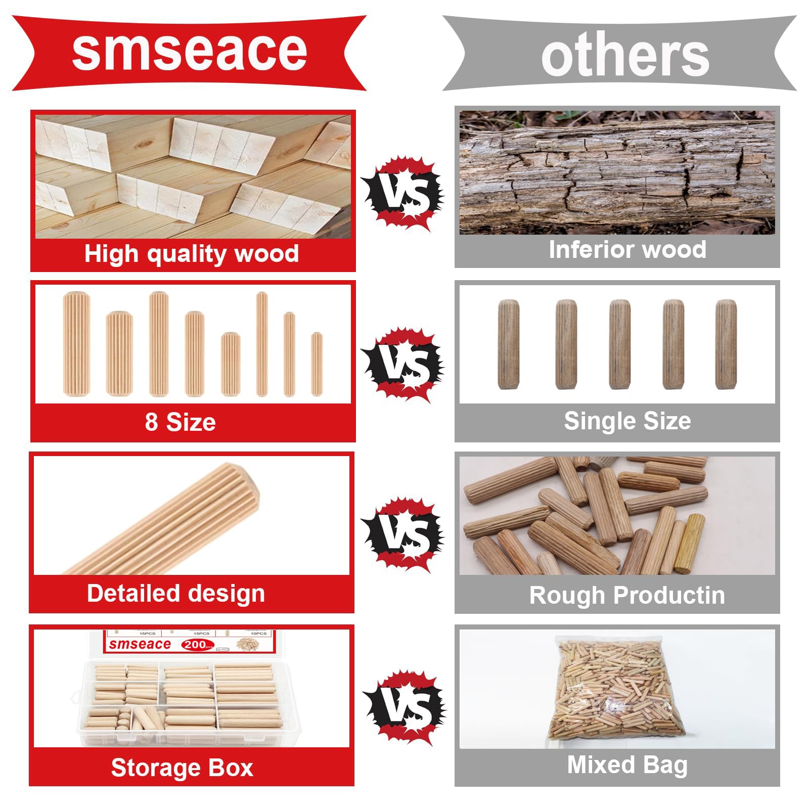 - Material: Straight grooved wooden dowels are made of lotus wood with flutes which eliminate trapped air for superior fastening.Wood dowel pins are strong, high in density and not easy to break