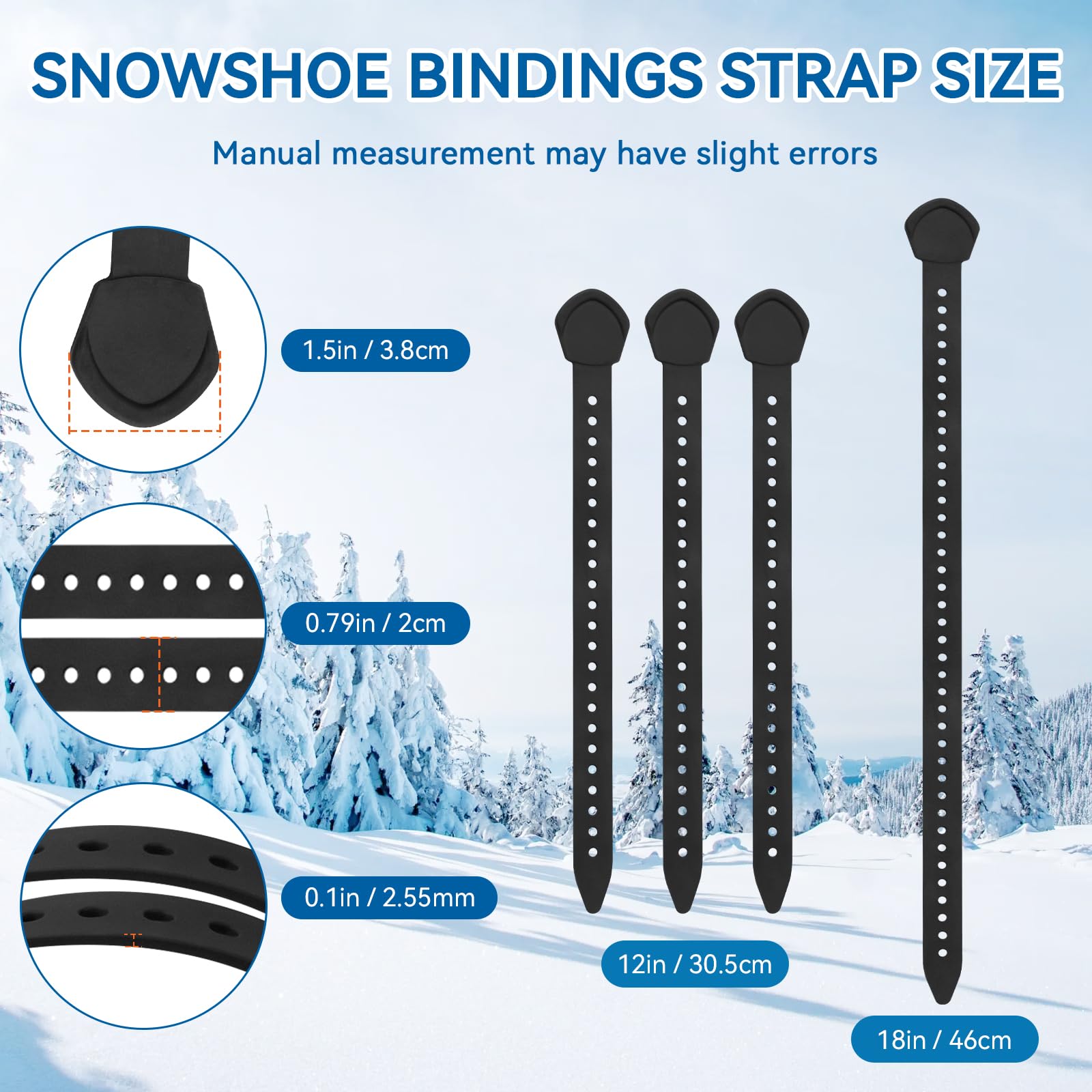 Details: 12 Inch & 18 Inch Snowshoe Straps for MSR Snowshoe Bindings Replacement Straps, Compatible with MSR Evo Ascent Snowshoes & PosiLock Bindings, Black (4 Pack)