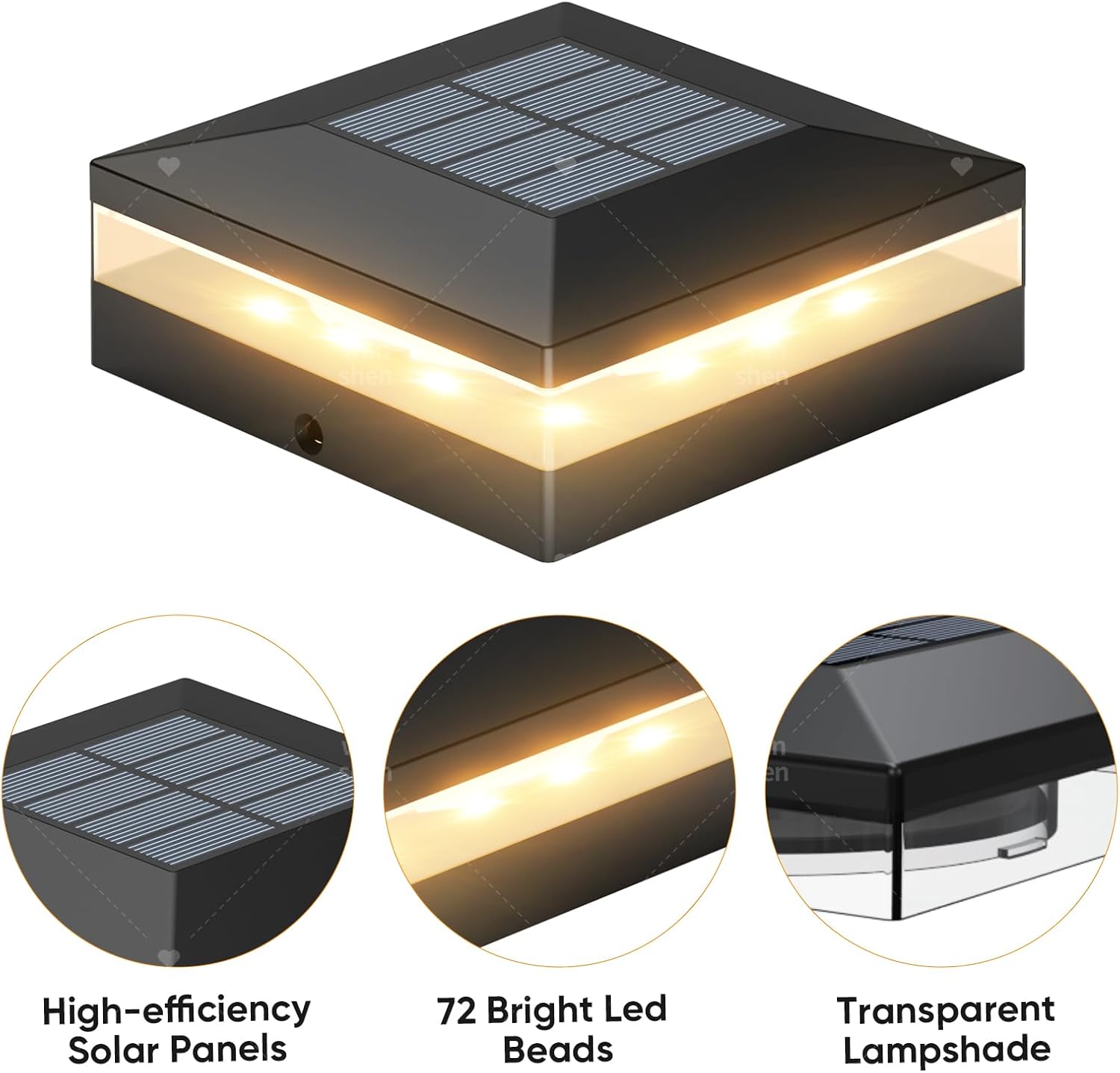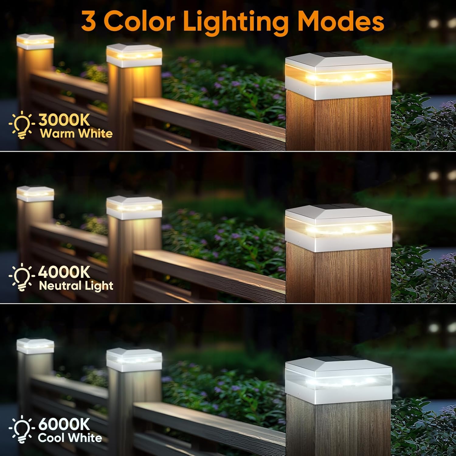 - 【3 Lighting Modes & 72 LEDS】 Viewsun fence post solar lights offer 3 lighting modes (Cool White & Warm White & Neutral Light), which can greatly meet your daily lighting needs. Each of our solar post cap lights is equipped with 72 LED beads, brighter than other deck lights. Adding a 360 degree viewing angle to illuminate your fence, deck, garden or mailbox.