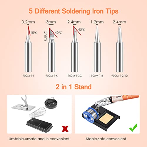 - [Rich Welding Tool Set]- Unique LCD display soldering iron, rosin paste flux,5 Pcs different shapes iron tips, 50g high quality tin wire, 2 in 1 stainless steel stand, highly absorbent sponge pad