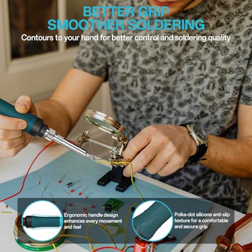- ¡¼Efficient Heat Dissipation¡½The soldering iron Pen features an upgraded steel tube design with four vents to help dissipate heat quickly, and a heat-resistant sheath nut and insulated silicone grips over 750¡ÆC to insulate the iron from heat and prevent injuries to your hands, which makes it ideal for long term soldering of all kinds of electronic components and repair of circuit boards.