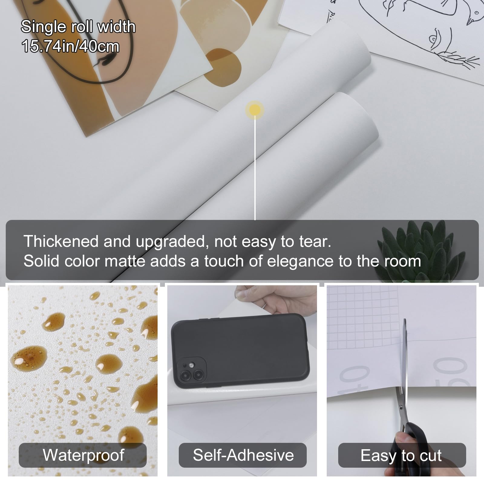 SOON AFTER White Peel and Stick Wallpaper Solid White Contact Paper Matte Self Adhesive Waterproof Vinyl Roll for Wall Coverings,Cabinets,Countertops,Bedroom,Kitchen 15.7"x118"