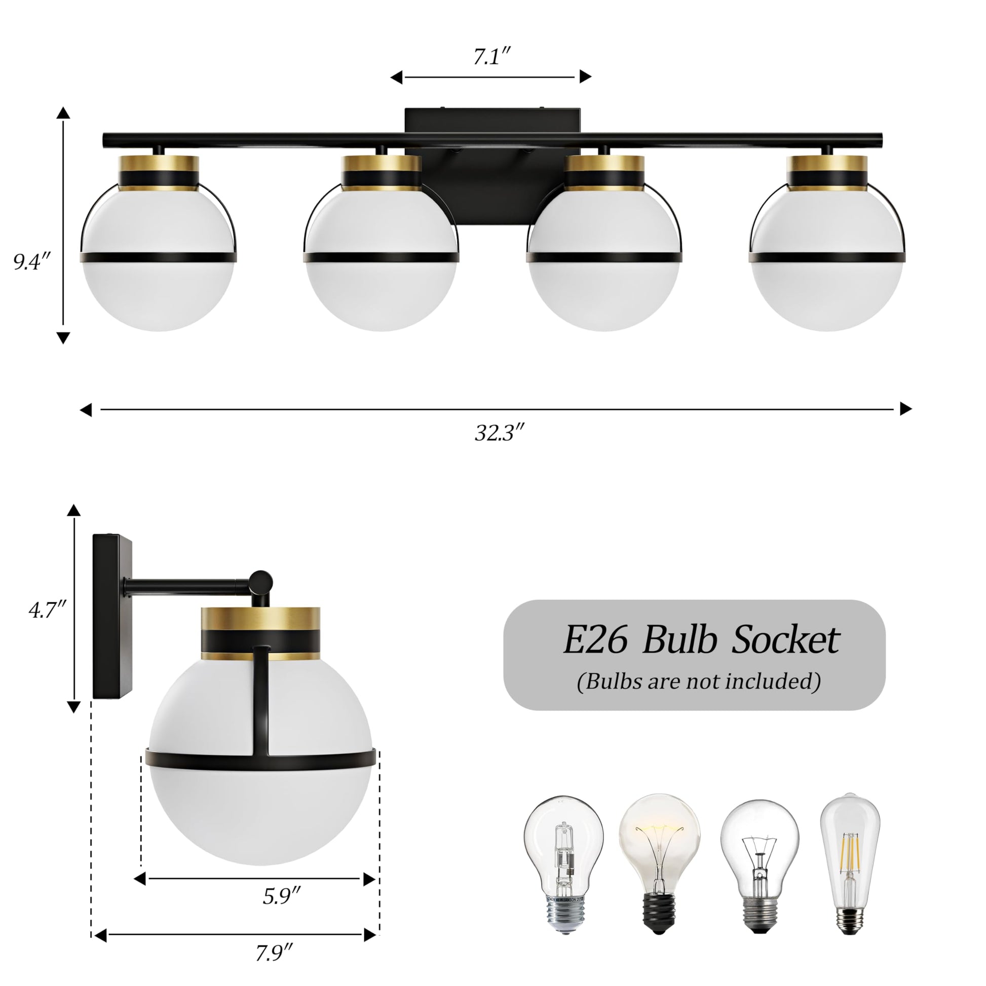 Soraglitium Black Gold Vanity Lights - ETL Certified 4 Light Mid Centery Modern Bathroom Sconces with Milk White Glass Shades (Exclude E26 Bulb)