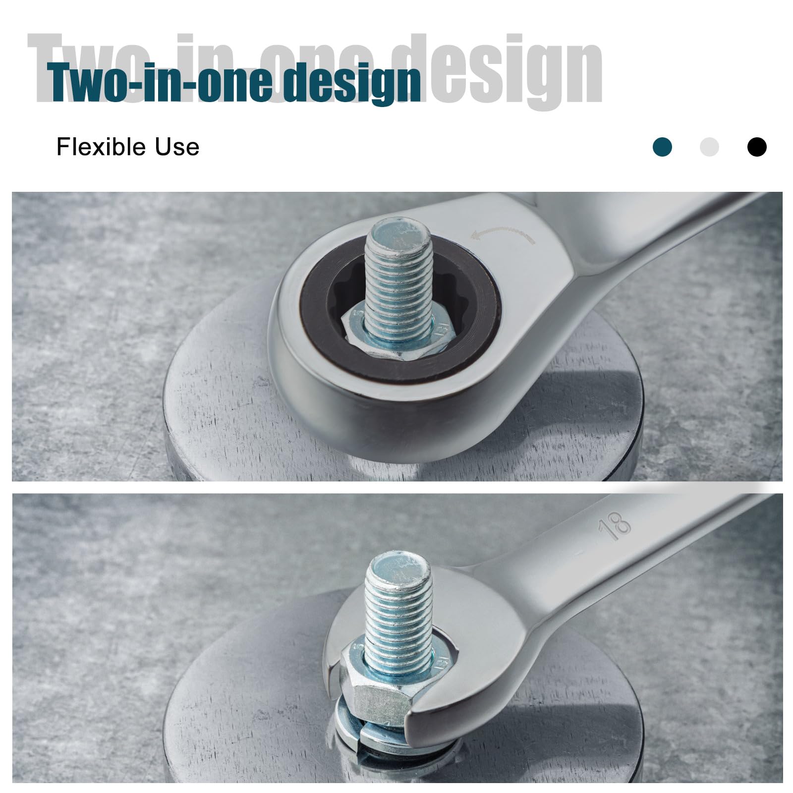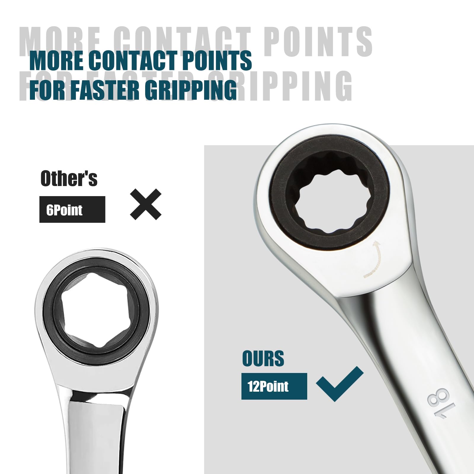 SORAKO 18mm Ratcheting Combination Wrench, Chrome Vanadium Steel Gear Wrench, Industrial Grade Cr-V Steel Gear Spanner, Household Garage Tools(Metric)