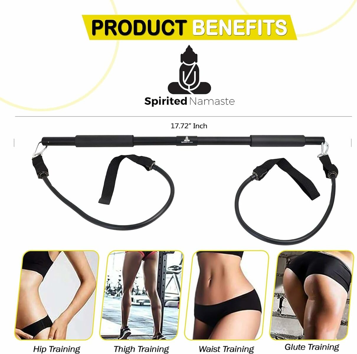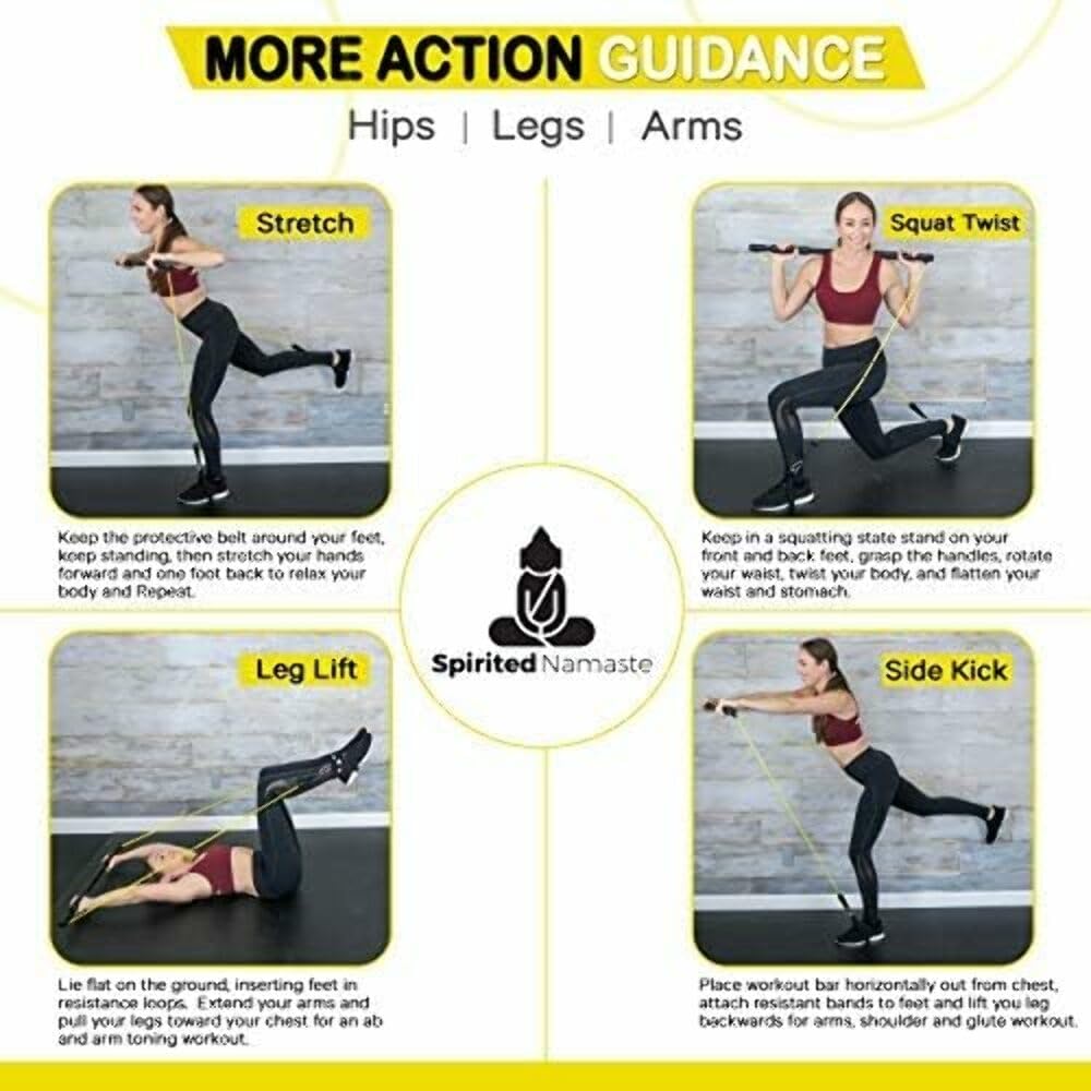 Spirited Namaste-Pilates Bar Home Gym Workout Equipment Kit with Resistance Bands| Portable Exercise Fitness Bar/Stick for Women and Men | 20,30, & 40 lb Pilate Toning Adjustable Squat & Body Band