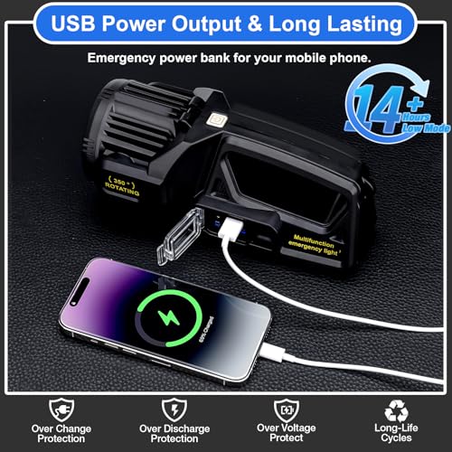 - [ 2,000,000L Rechargeable Spotlight & Long Range ] Equipped with polymerized LED wicks, this powerful LED spotlight throws a strong light up to 1300 meters. You can see clearly in pitch darkness or during emergencies like power outages or camping trips.