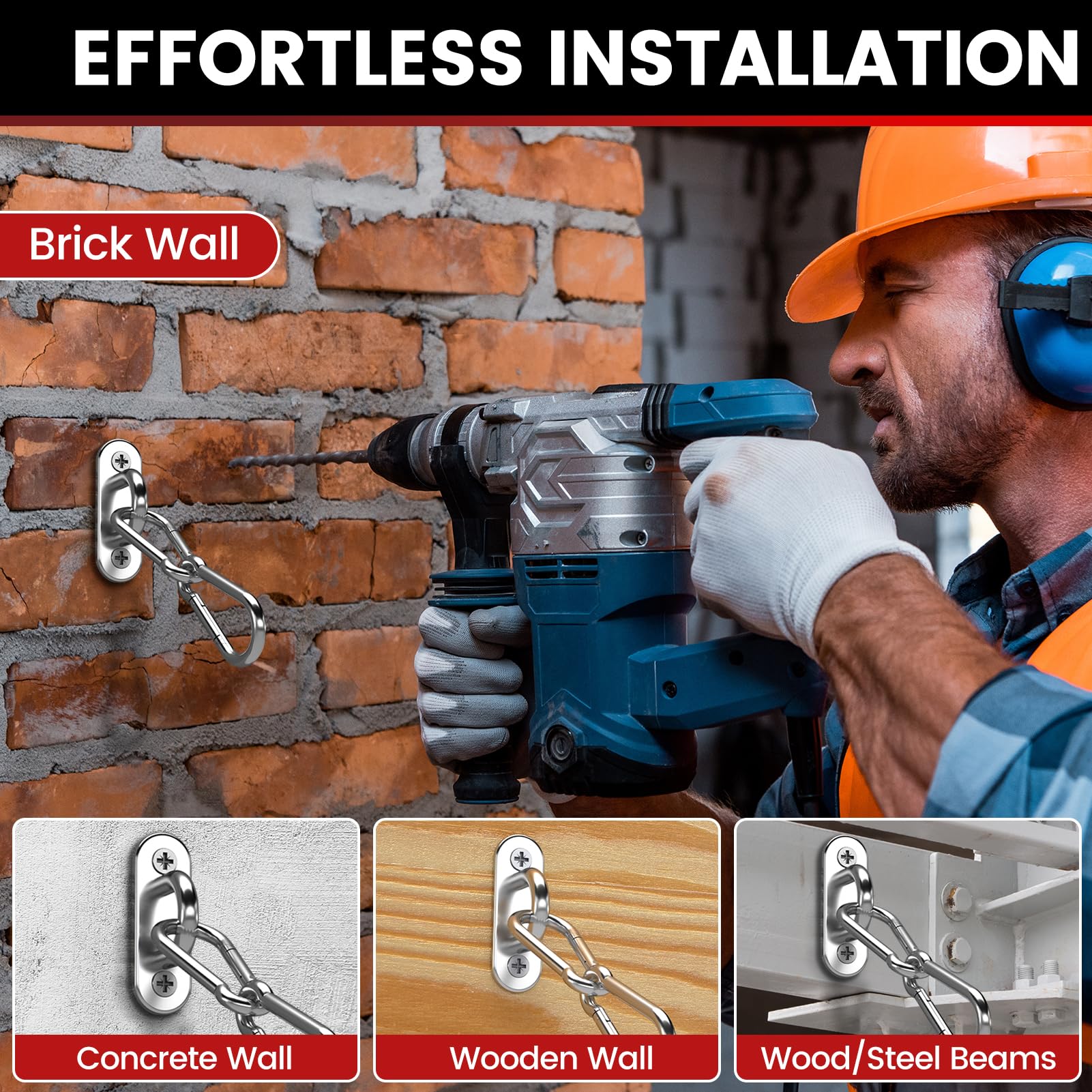 - Premium Materials: Ceiling hooks are made from high-strength stainless steel and expertly welded to ensure each connection is secure and flawless. The pad eye hooks offer exceptional rust and corrosion resistance, ensuring reliable performance and durability even in harsh environments