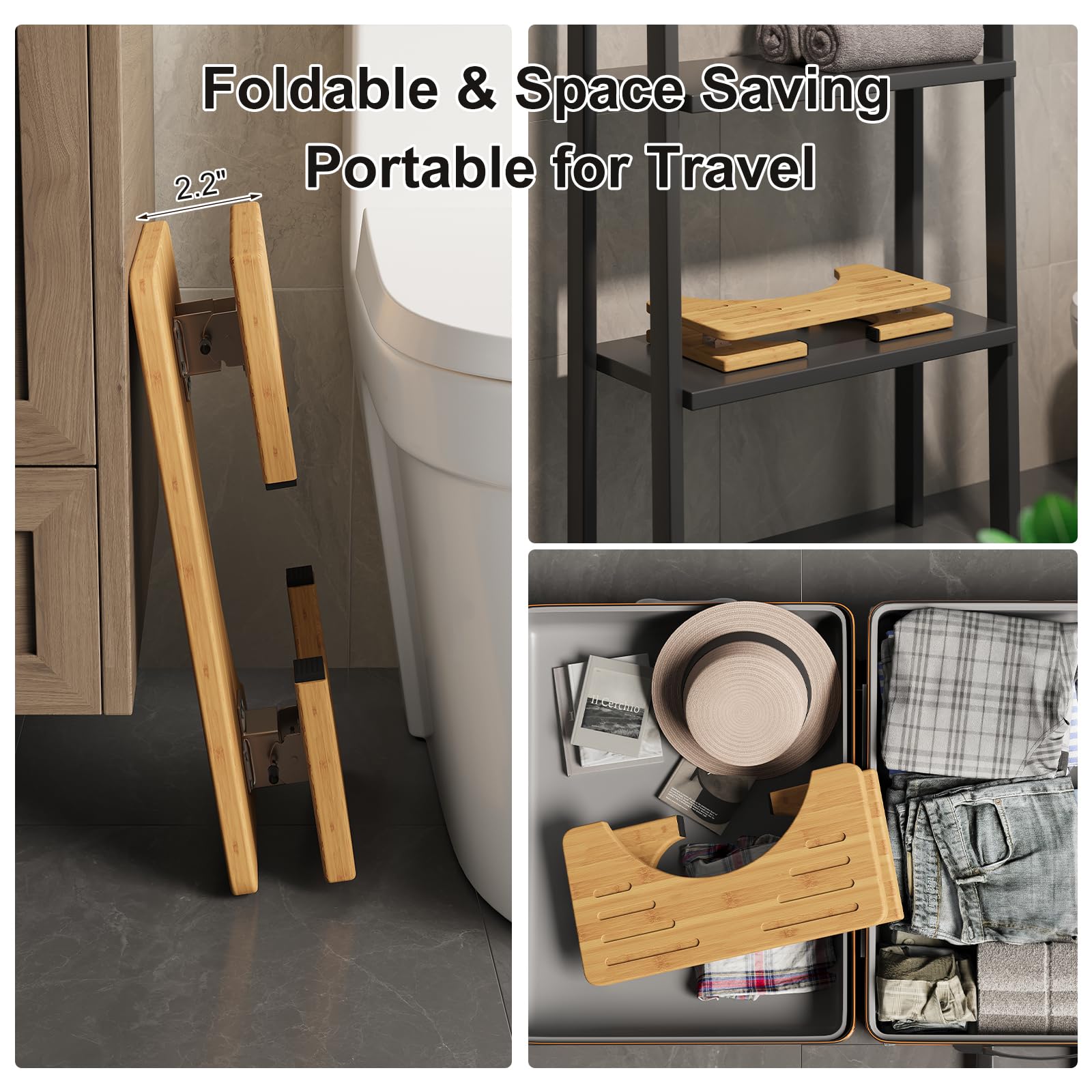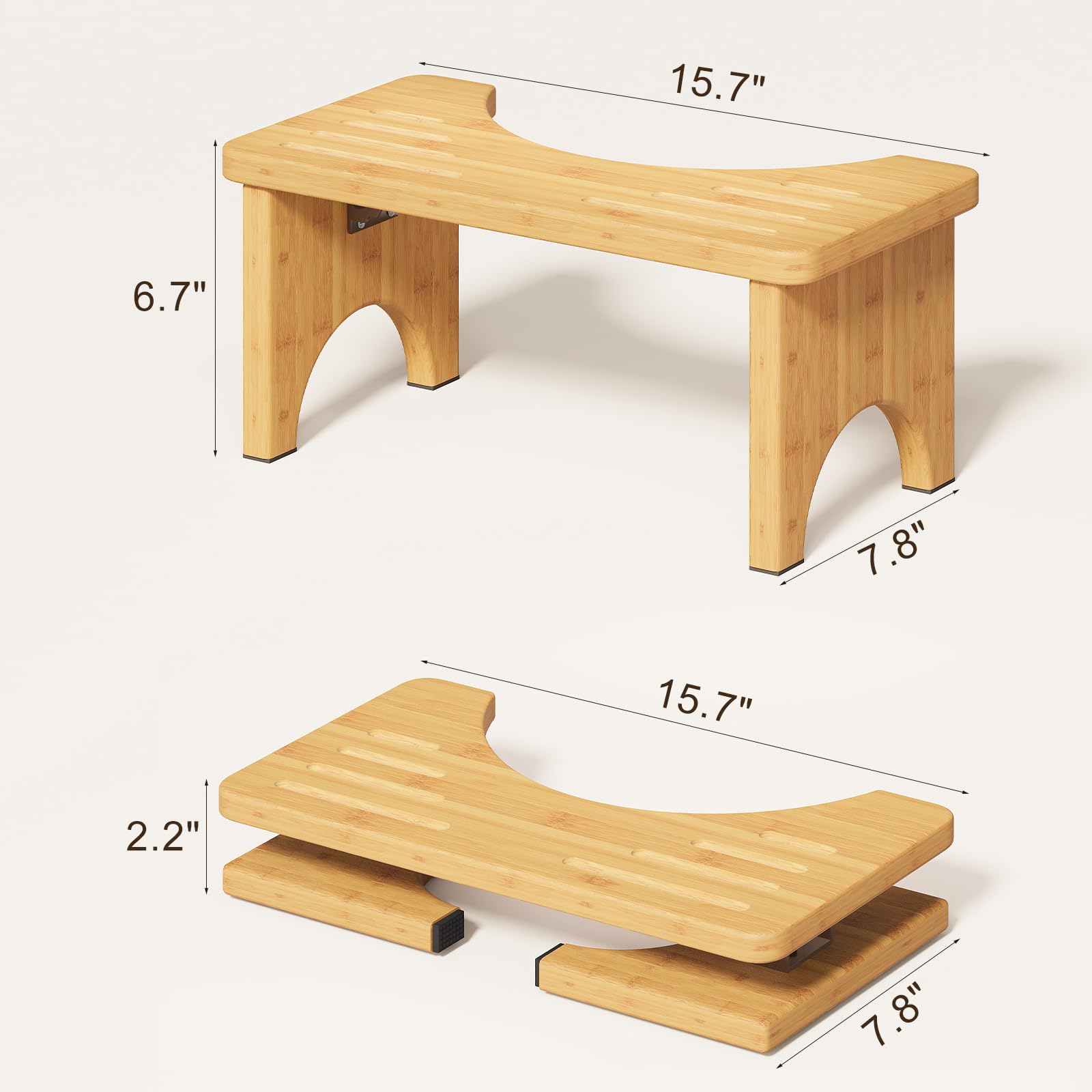 Squatting Potty for Adults Foldable, 7In Bamboo Toilet Stool Squat Adult and Kids, Wood Travel Poop Stool for Bathroom, Wooden Portable Toilet Foot Step, Premium Flip Pooping Potty Stool
