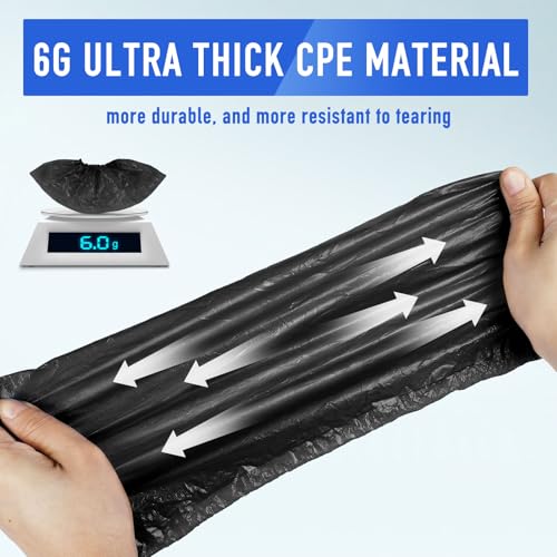 squish Shoe Covers Disposable Non-Slip, 200 Pack 6g Thick Booties Cover, Waterproof Slip Resistant Disposable Shoe Covers Durable Protector Covers for Indoors and Outdoors Fit Up to 13 Size (Black)
