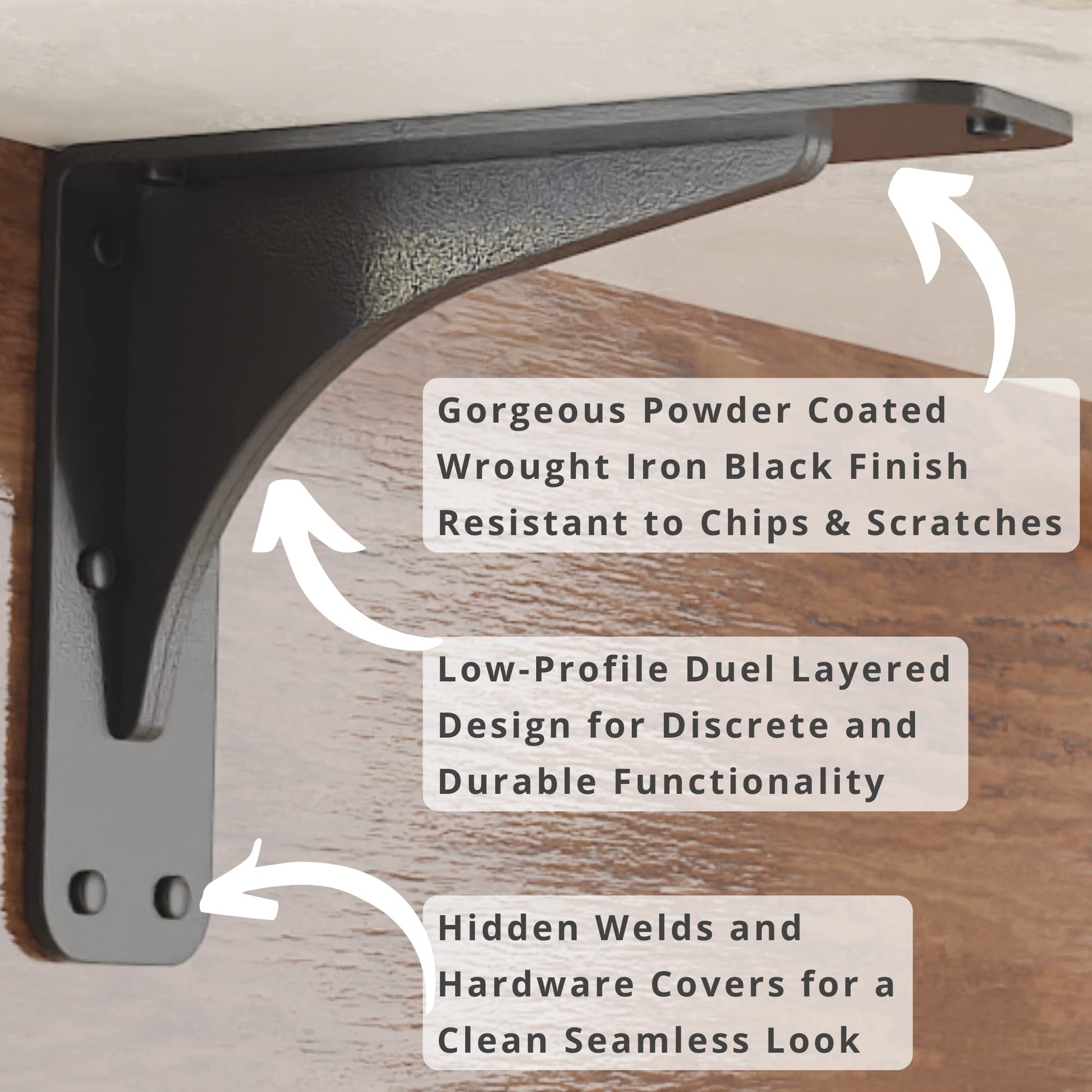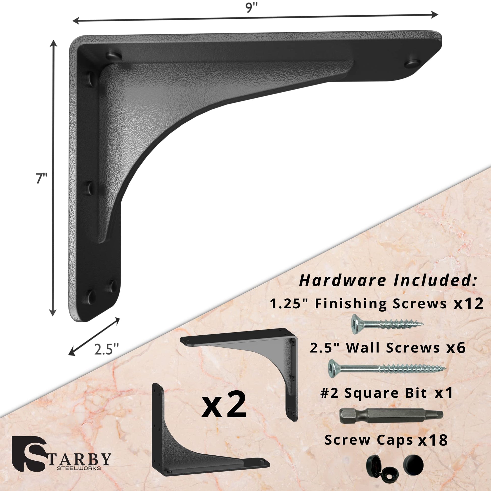 Starby Gladiator Series Solid Heavy Duty Welded 500 Lb Low Profile Granite Countertop Support Shelf Brackets Floating Shelf Discrete Slim 500 LB Capacity (2 Pack) (7" x 9" x 2.5")