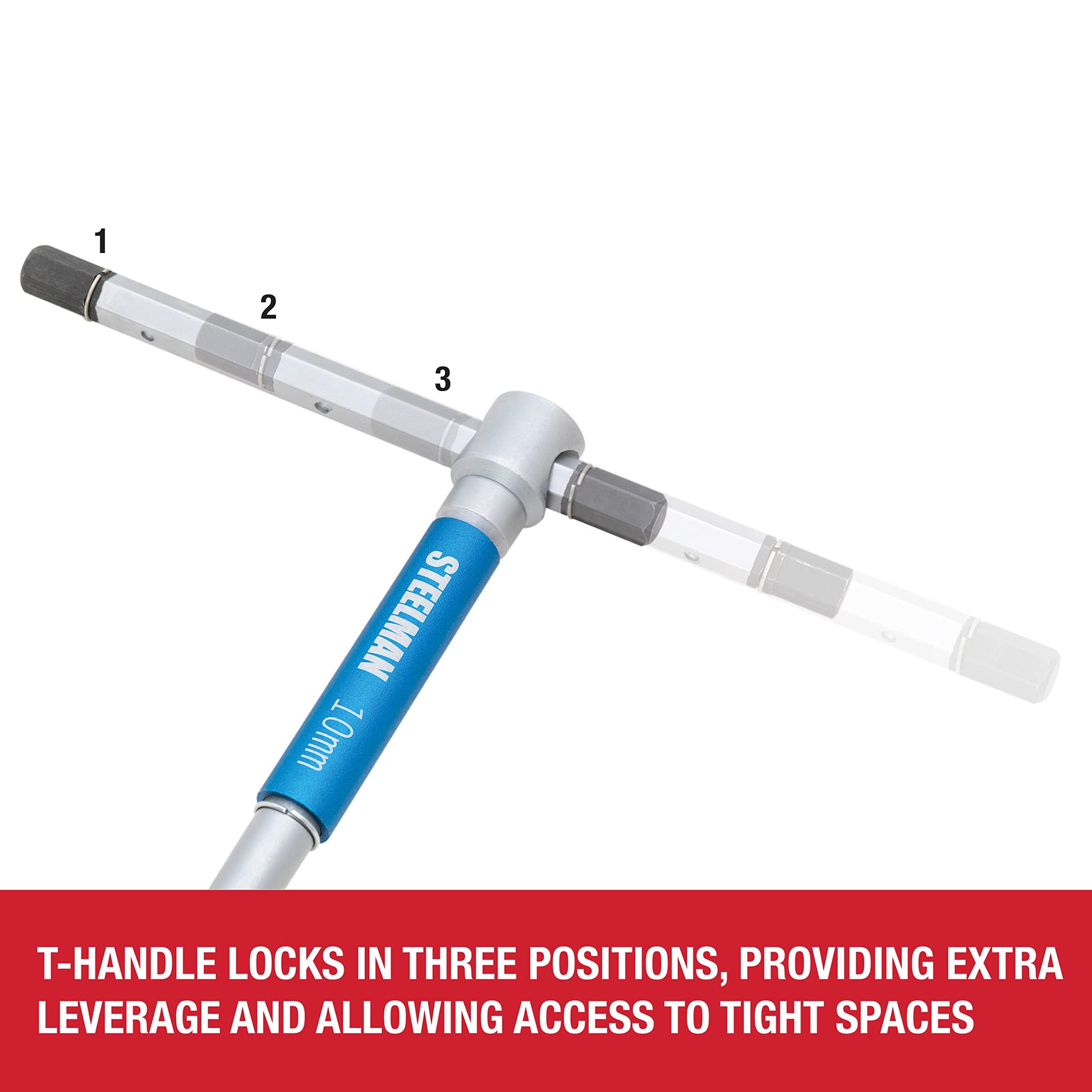 Steelman 8-Piece Metric T-Handle Allen Hex Key Wrench Set, Free Spinning Sleeves, Sliding Handle for Access, Precision Machined Tips, with Storage Tray, for Bicycle, Auto, Moto, Small Engine (42600)