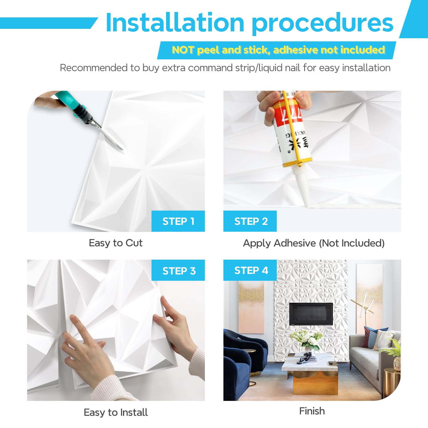 - PERSONALIZATION: Use your imagination to plan the placement of captivating 3D diamond wall panels in conjunction with ambient lighting and home decor style to create a trendy and modern interior wall decor. Paintable PVC materials, allows you to personalize your walls according to your desired color palette.