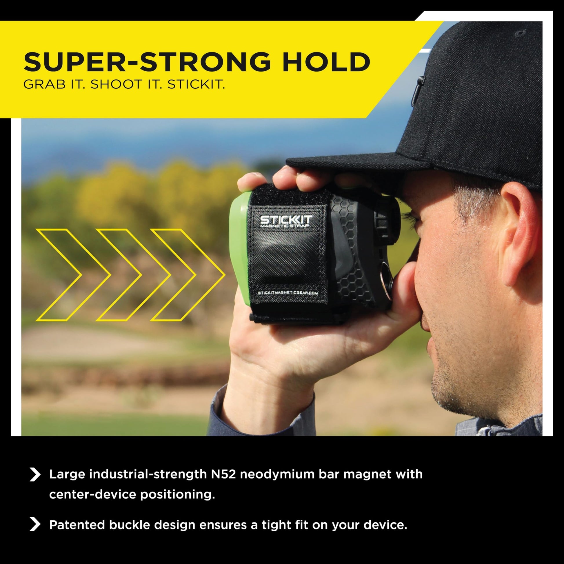 - STICKIT PATENTED-DESIGN & TOP-QUALITY PERFORMANCE GUARANTEE — STICKIT is the only patent-protected magnetic rangefinder strap on the market, with unmatched magnetic strength and industry-setting rangefinder accessibility that is trusted and used by professional caddies and tour players since 2016.