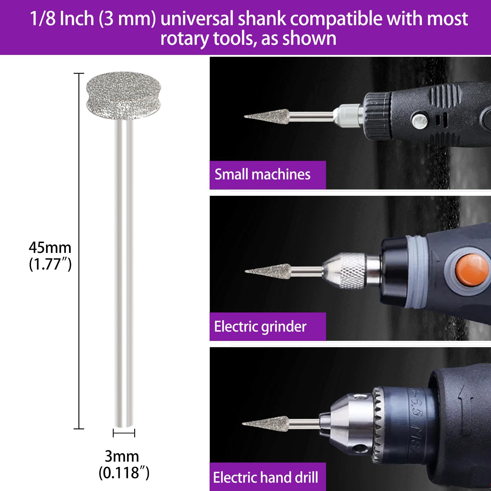 - Universal Compatibility: Equipped with 1/8inchs (3 mm) universal shank that is compatible with most rotary tools for easier work