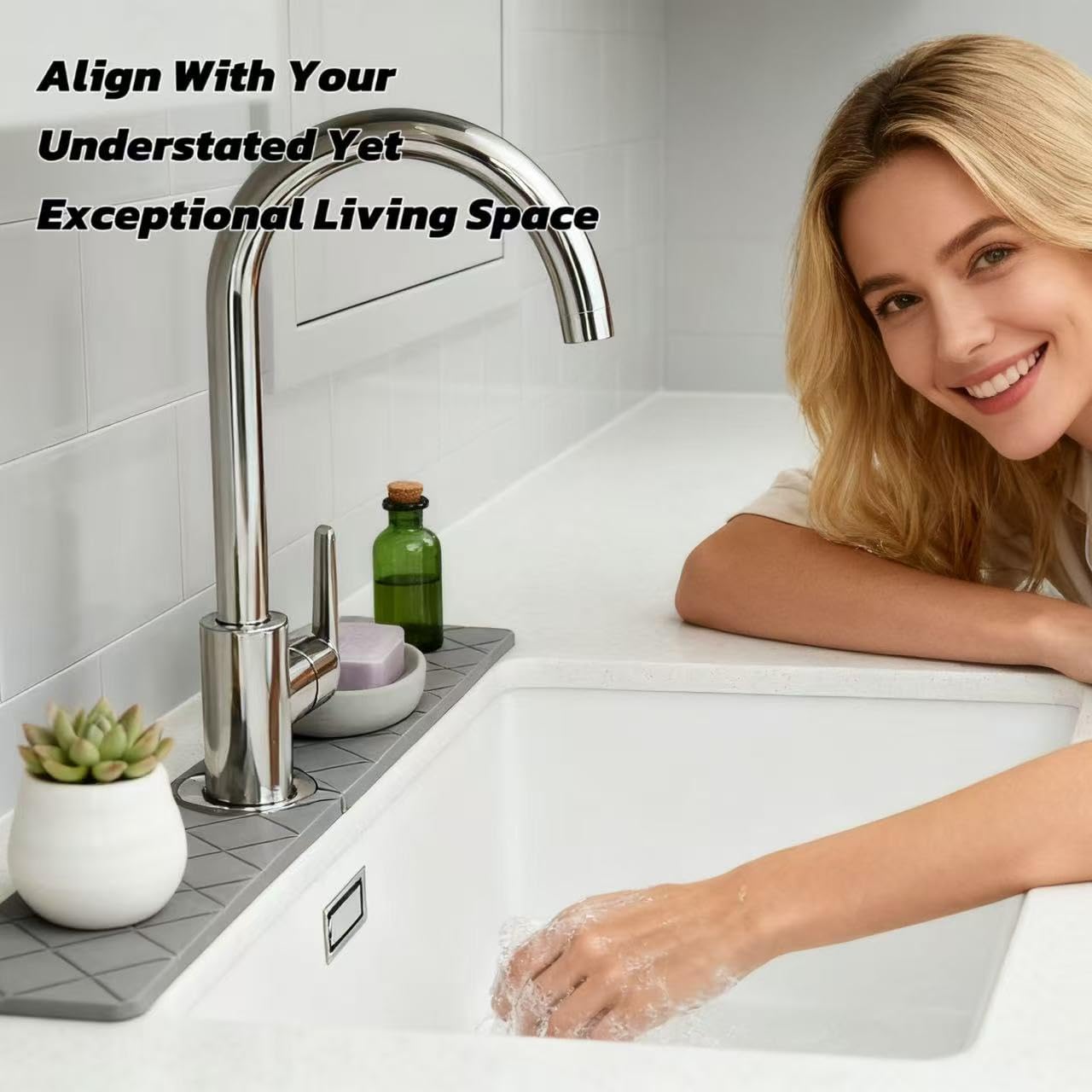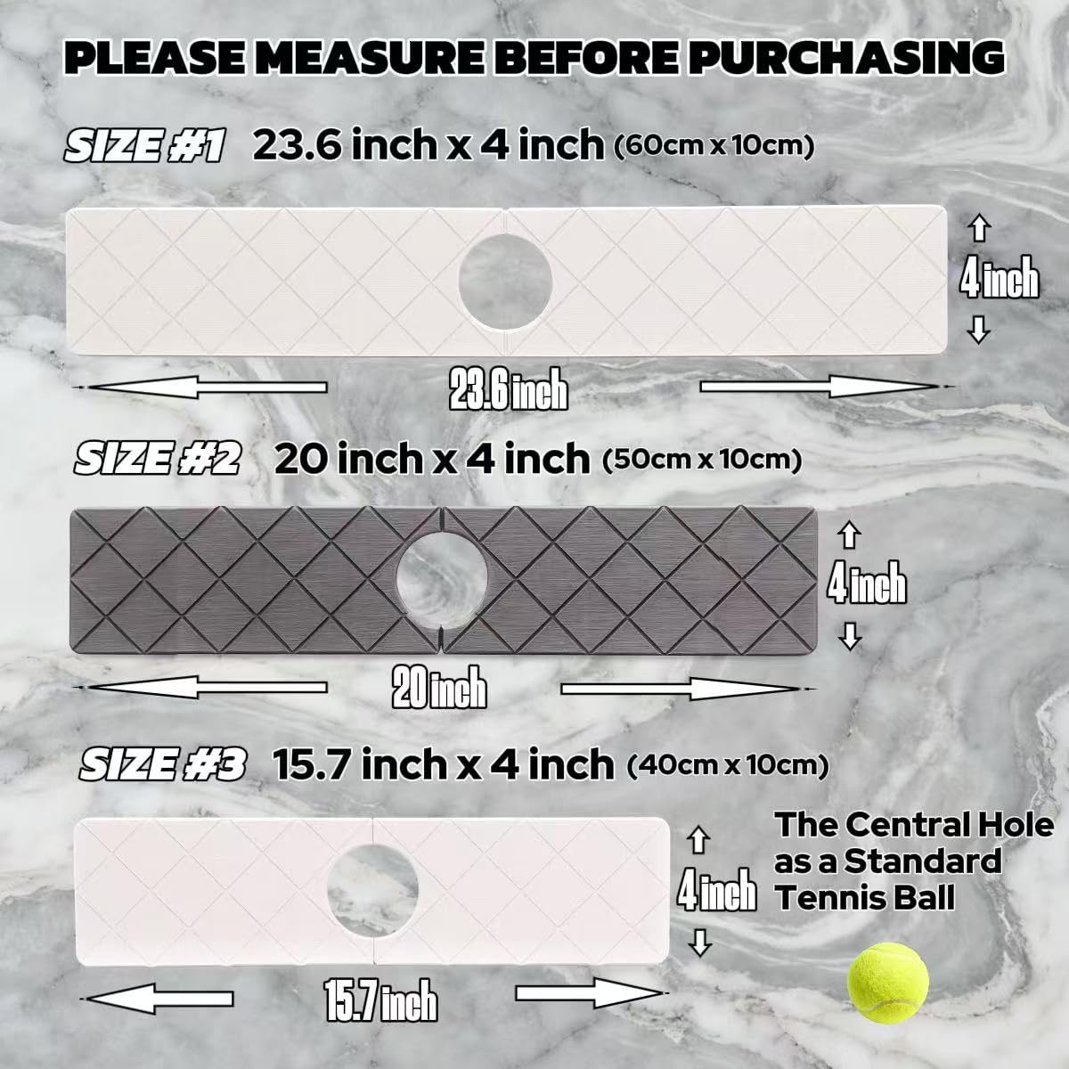 - 【Perfect Fit for Most Faucets】Sized 23.6" × 4" (40 × 10 cm) with a 2.5" (6.5 cm) center hole — designed for single-tube faucets under 2.5" thick MEASURE YOUR SINK SPACE FIRST TO ENSURE A SNUG, SPLASH-PROOF FIT