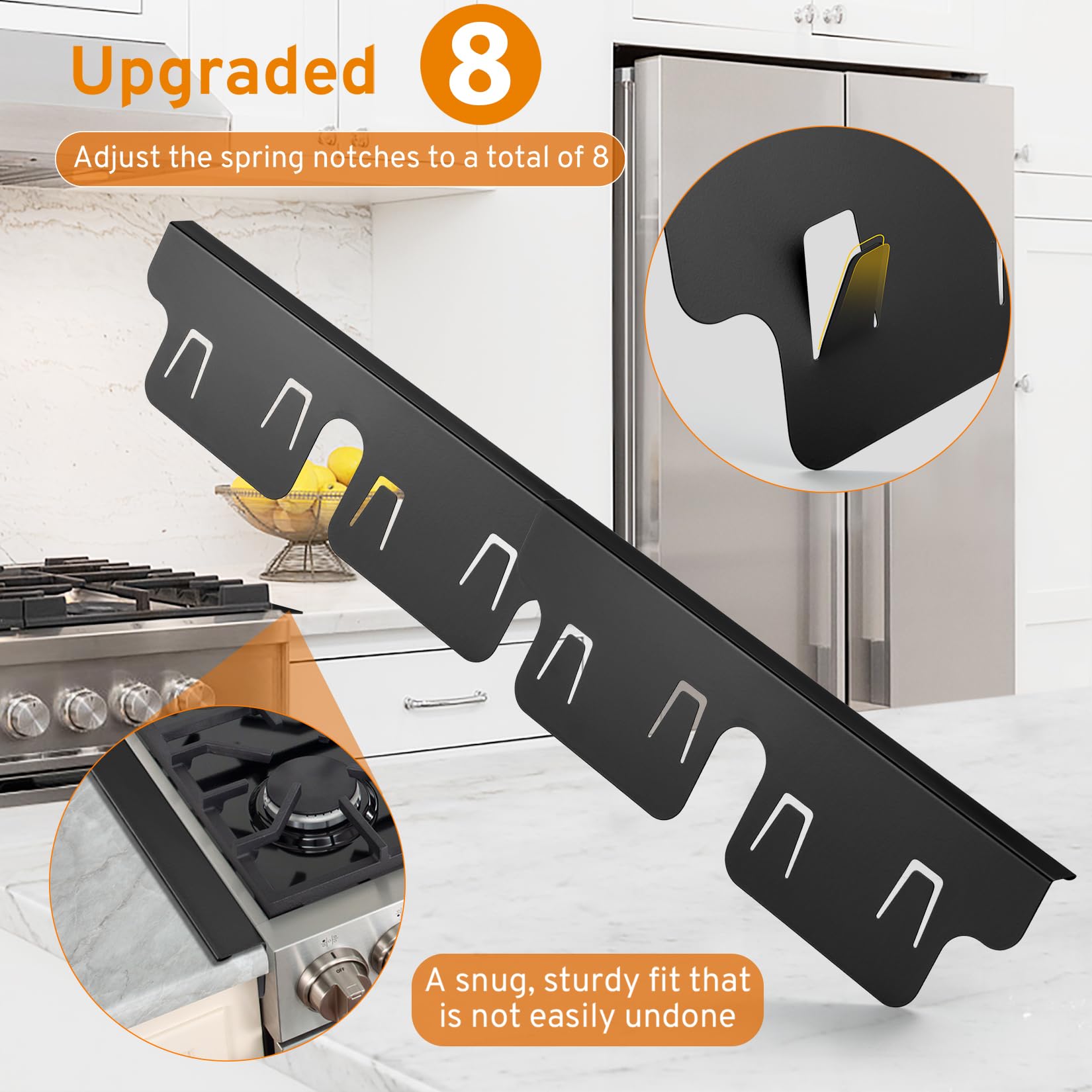 Stop Spills & Crumbs! Stainless Steel Stove Gap Covers (2 Pack) | Heat-Resistant Filler for Gas Stoves & Ovens | Adjustable 13.8" to 27.5" | Non-Slip, Easy Clean, Tool-Free Install (Black)