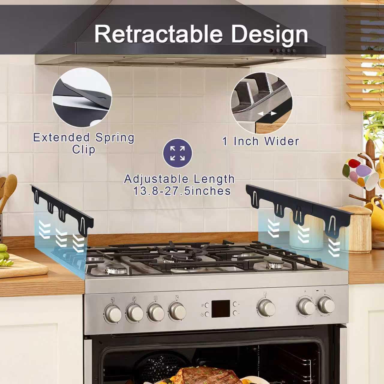 - 【Prevents Debris】This adjustable stainless steel stove guard for gas stoves effectively prevents dust and food debris from entering the gap between your stove and countertop. It's also easy to clean, dry, remove, and replace.