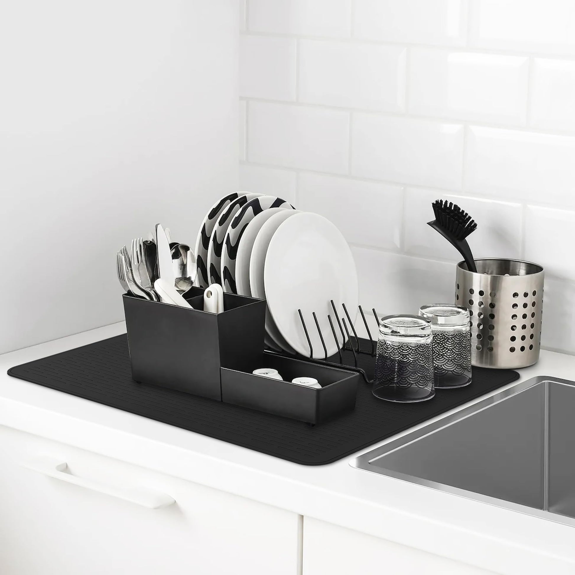 - Kitchen Drying Mat:The unique design of wide raised line ridges increases air circulation, improves ventilation, and catches drips from dishes, glasses, fruits, and vegetables. The high edges and waterproof bottom keep the countertop dry and clean, making it an ideal kitchen drying mat.