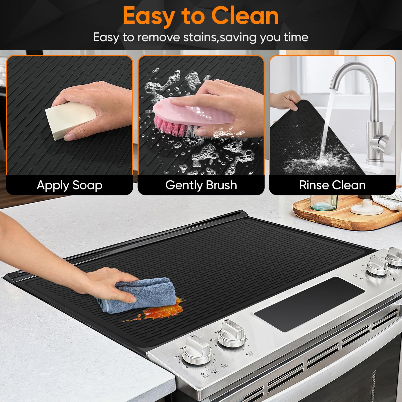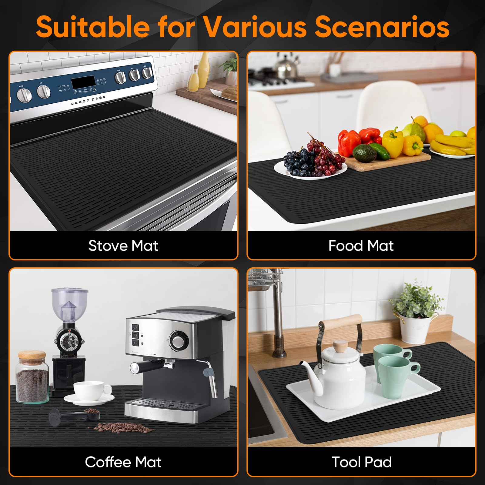 Stove Top Cover for Electric Stove, Stove Top Covers for Gas Burners, Glass Cooktop Protector, XL Dish Drying Mat (Black, 28"x20")