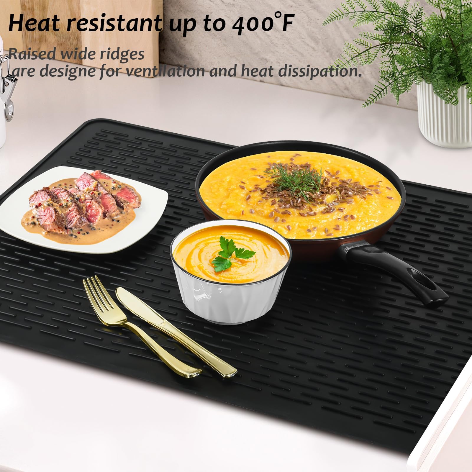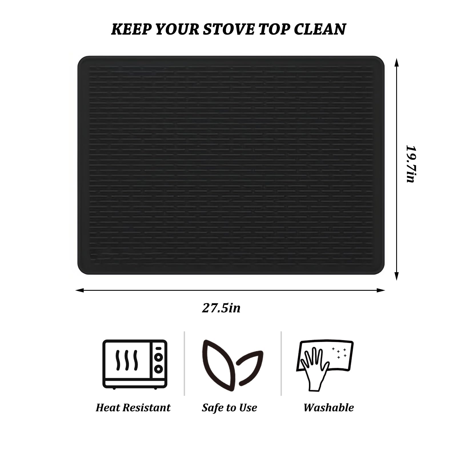 Stove Top Covers for Electric Stove - Silicone Stove Cover Mat - 28 x 20 Ceramic Stove Guard Stove top Protector, Heat Resistant Cooktop Cover, Dish Drying Mats for Kitchen, Black