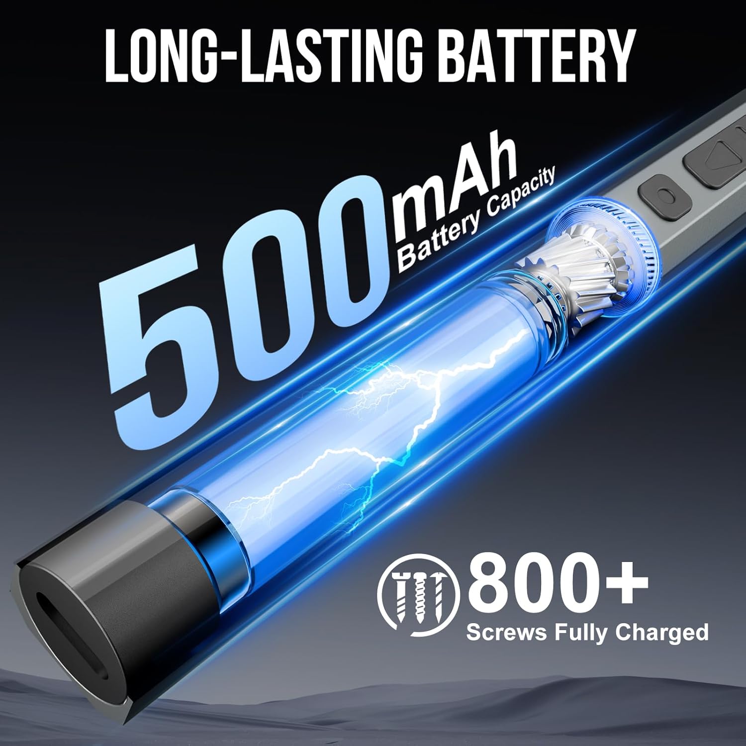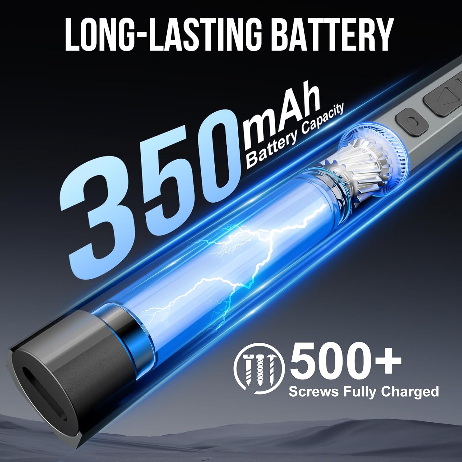 - Rechargeable and Long-Lasting: This cordless screwdriver equips a 350mAh lithium-ion battery, which has undergone 28 battery-related tests to ensure safety and a longer working time. With a fast charging time of 60 minutes, this cordless screwdriver rechargeable provides continuous power for your projects. And the universal Type-C charging interface makes charging convenient for the precision electric screwdriver