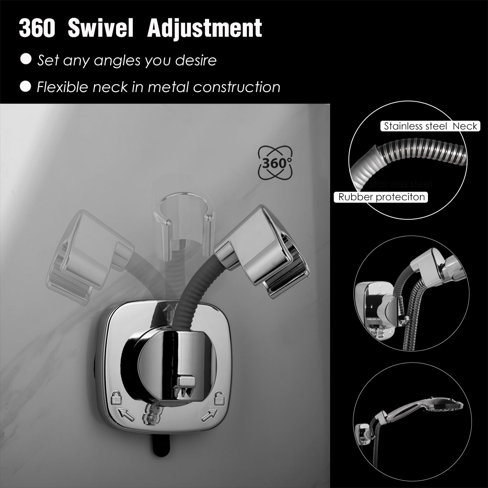 - 【360 SWIVEL】: The shower spayer holder can rotate 360 degrees freely to adjust to any angle you desire.Thanks to the metal construciton, the flexible tube can be adjusted smoothly even on some heaveir shower sprayers.