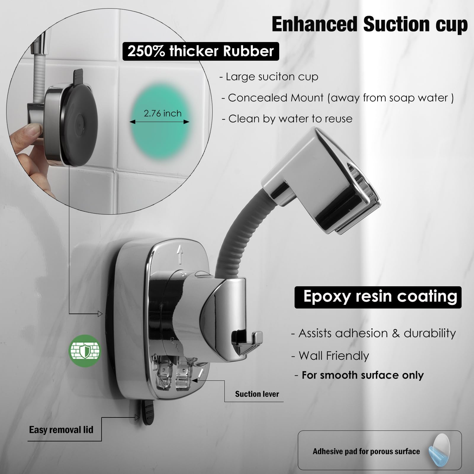Suction Cup Handheld Shower Head Holder - Reusable - 360 Swivel Adjustable - Wall Mount Shower Wand Holder - ( Chrome Finish)