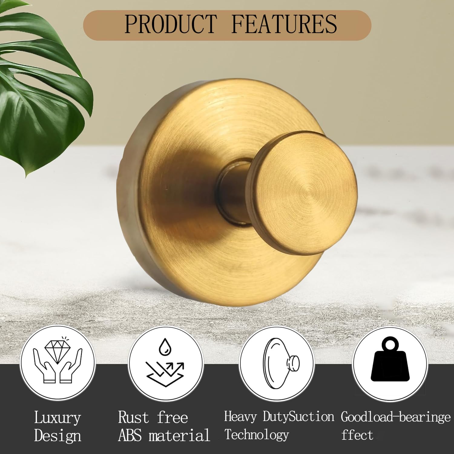 - 【Suction Cup Hooks - Aesthetically Pleasing and Practical】Brushed gold towel hook for bathroom wall employ modern and simple style design, beautiful and fashionable, silver/gold bathroom hooks for towels compatible with any other bathroom accessories, wall hanger hooks good for bathroom, kitchen, laundry room, suction cup shower hook can also used to store daily household items, such as towel, loofah, coat, robe, clothes etc