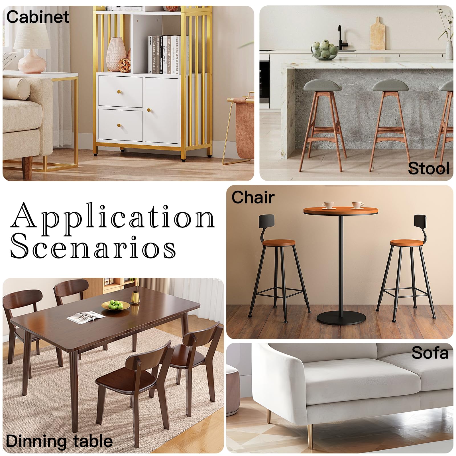 - Solid Leg Caps: Strong grip and stabilization protection featured the round furniture leg caps, effective to stay in place and protect from scratch and noise.