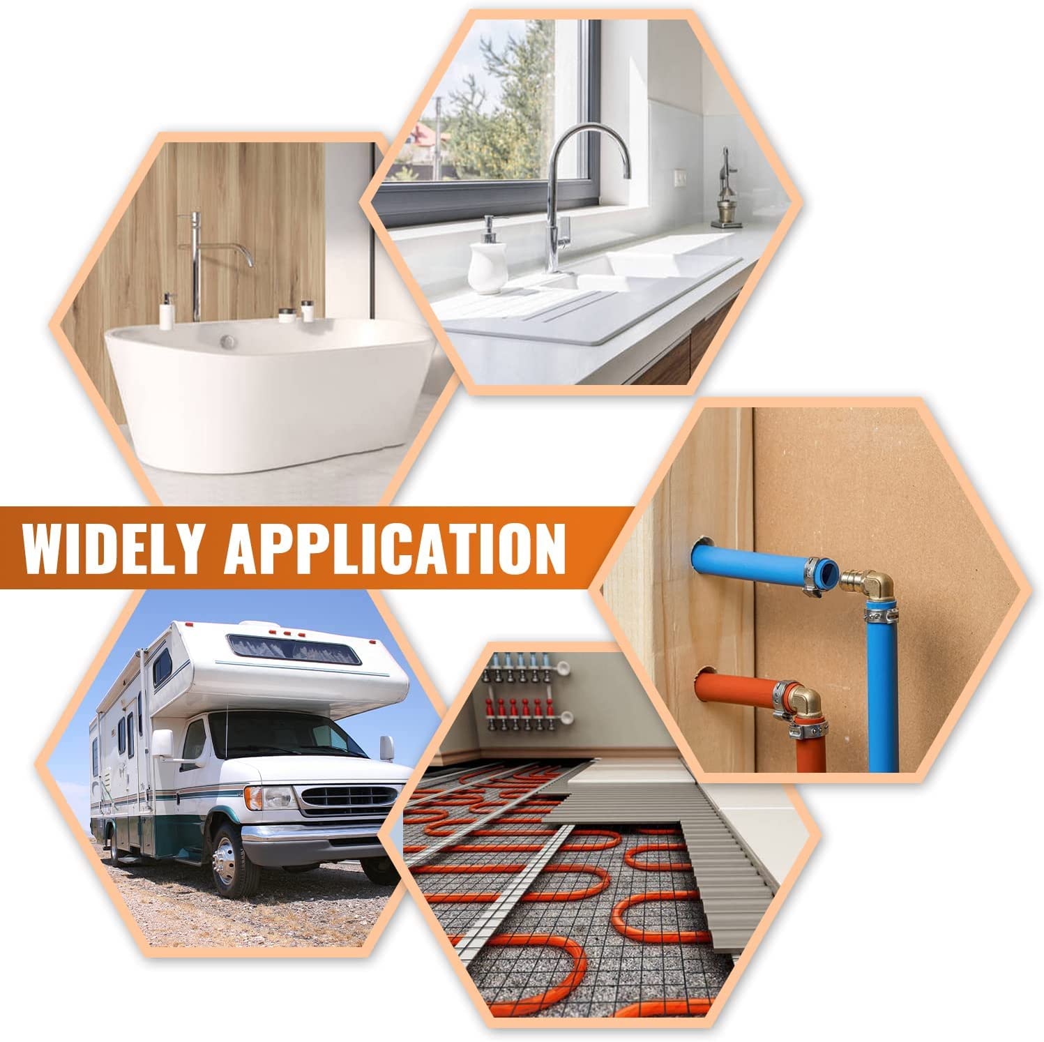 - 【Applications】: 1" Pex fittings can be used for PEX pipes in plumbing jobs. For Pex Tubing. Great for hot or cold water distribution and and hydronic heating systems in your home, in warehouse or in RV. But NOT UPONOR/Wirsbo EXPANSION SYSTEM & PB TUBE.