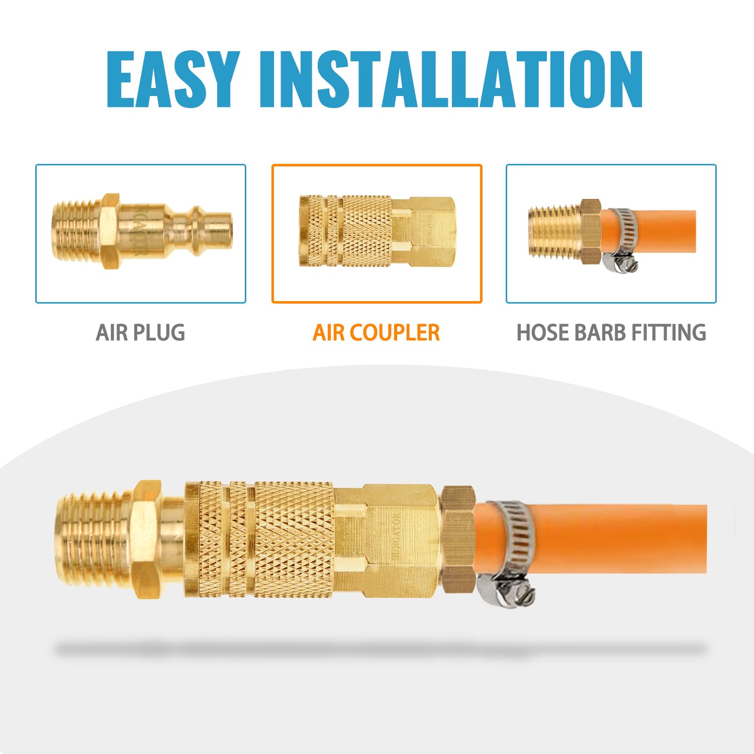 - 【KNURLED SLEEVE】: Knurled sleeve provides these air hose fittings with better grip when connecting and disconnecting, which also helps reduce the risk of accidental disconnects and protects the coupler sleeve