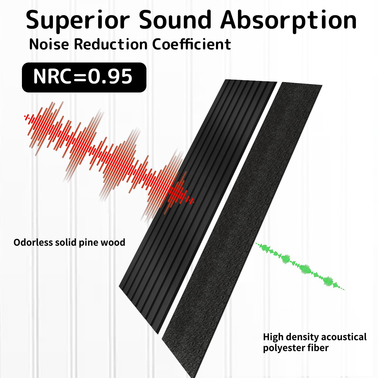 - 【Superior Sound Absorption】The back of the acoustic wood wall panels adopts a soundproof felt backboard(NRC=0.95), delivering outstanding acoustic performance by effectively reducing echoes and background noise, creating a tranquil space.