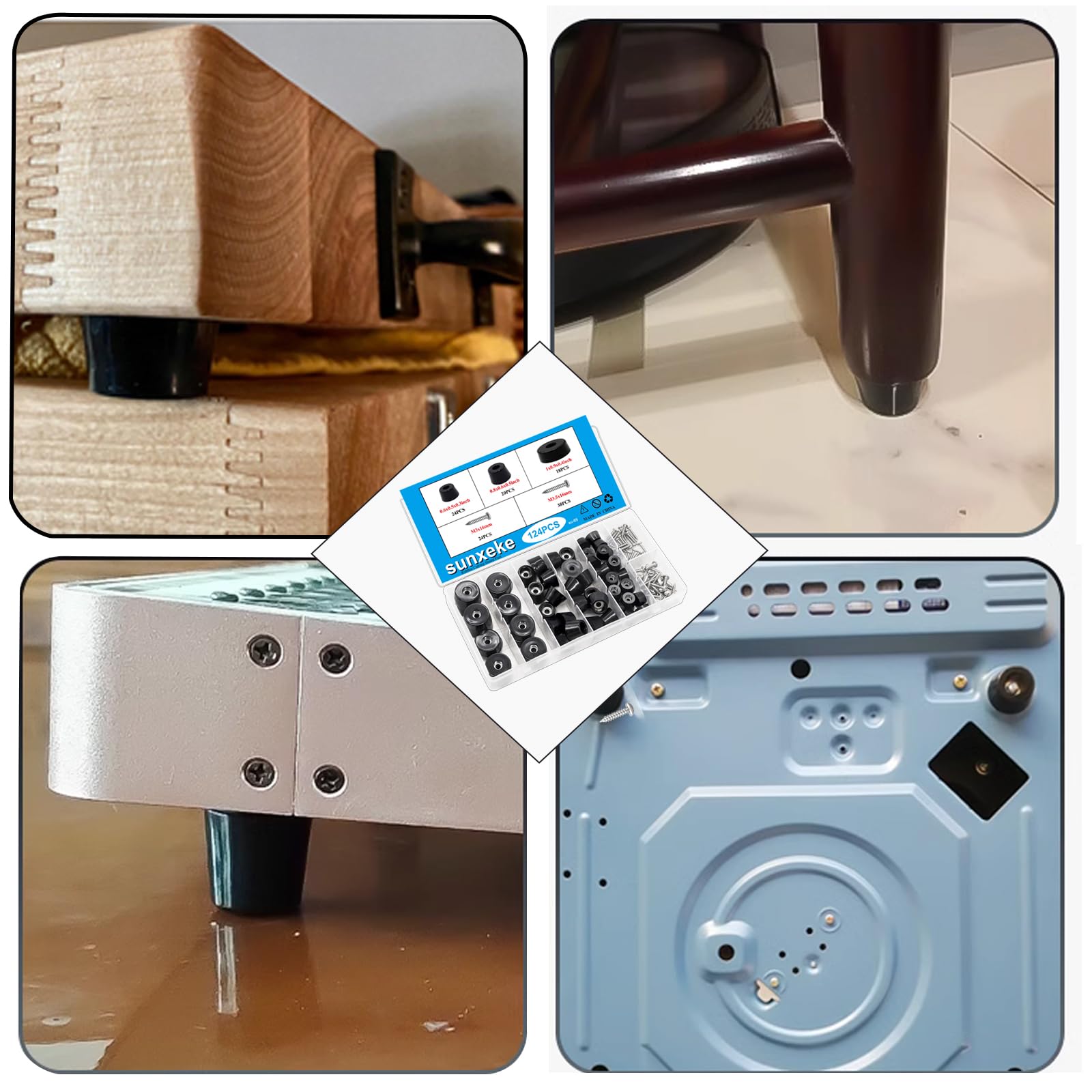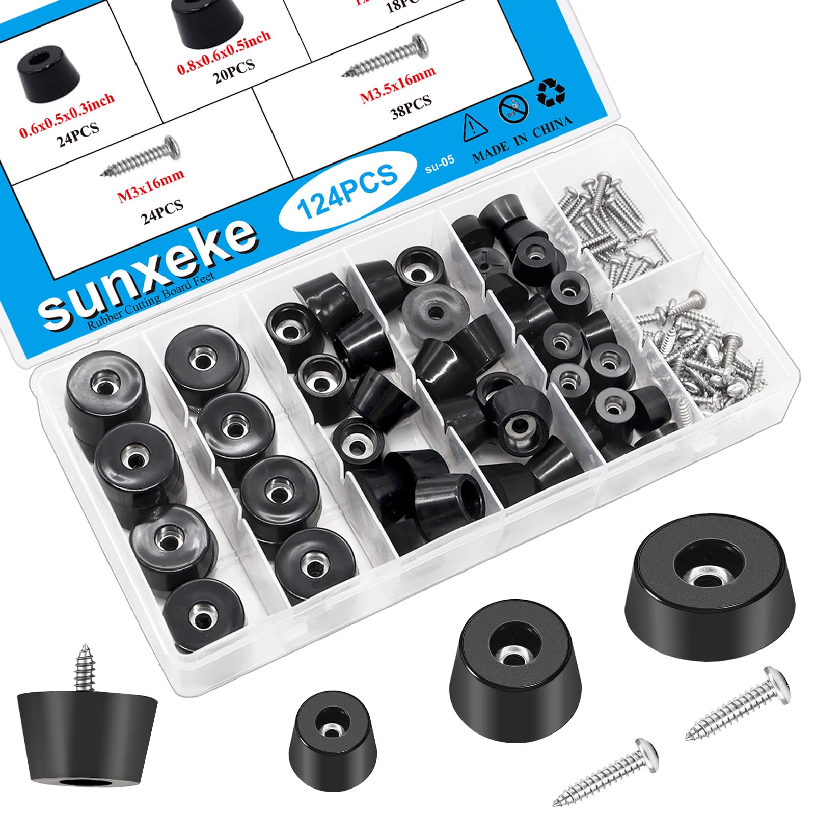 Sunxeke 124Pcs Rubber Feet for Cutting Board with Stainless Washer Screws Assortment Kit,3 Sizes (0.6inch, 0.8inch, 1inch),Non Slip Rubber Bumper Feet for Furniture, Cabinets, Electronics