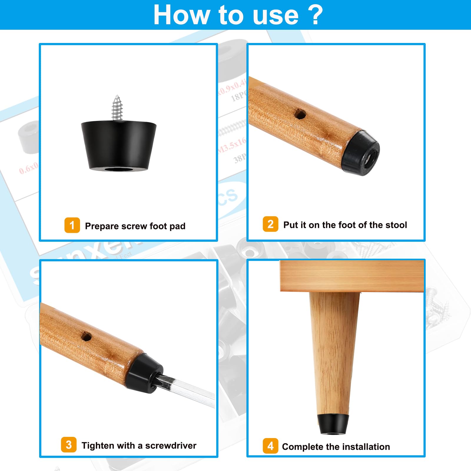- 124pcs 3 Sizes foot pad and screws can be selected – Choose from 0.6inch, 0.8inch, 1inch rubber feet to perfectly fit cutting boards, electronics, or furniture legs(as shown in Figure 2)