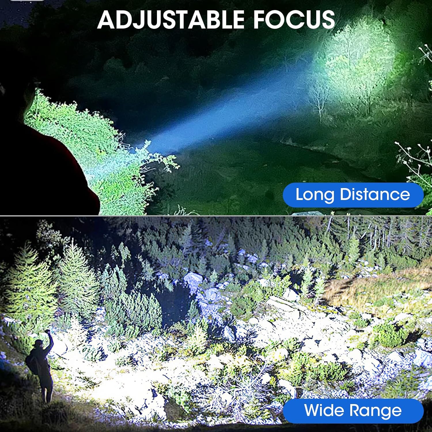 - Adjusatble - Our strong light handheld strong flashlights can be adjusted to illuminate distance and range, by adjusting the lamp holder, you can illuminate a target up to 3280 feet, and illuminate a range of up to 2152 square feet