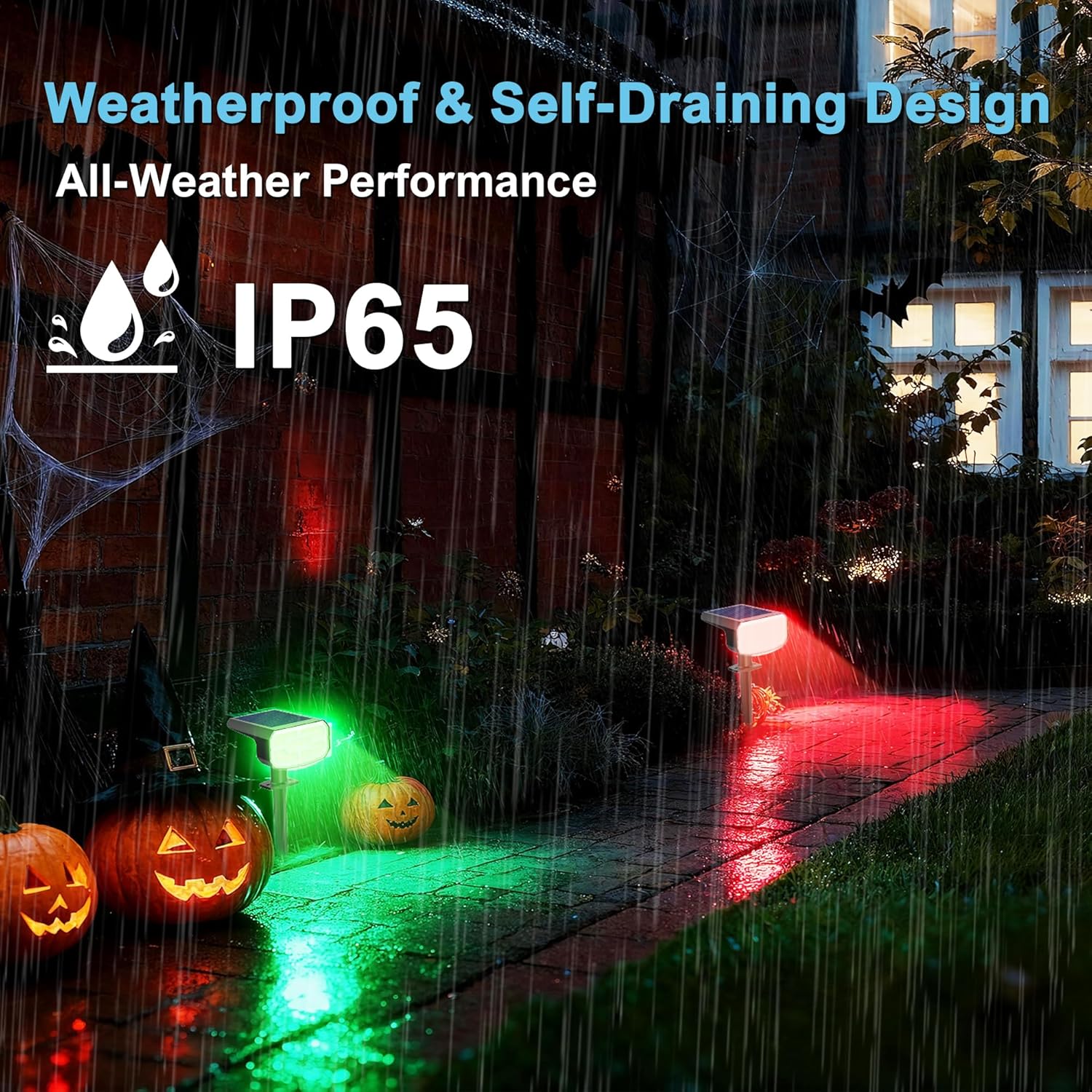 - JEJOT Flood Lights Using ABS high-strength material. The IP65 waterproof rating allows the solar outdoor spot lights to withstand all kinds of bad weather such as rain, snow, wind frost, high temperature, etc. Outdoor solar spot lights for yard is perfect to use! Anti-fogging design - can perfectly solve the problem of fogging on the lens, maintaining light intensity and prolonging the service life