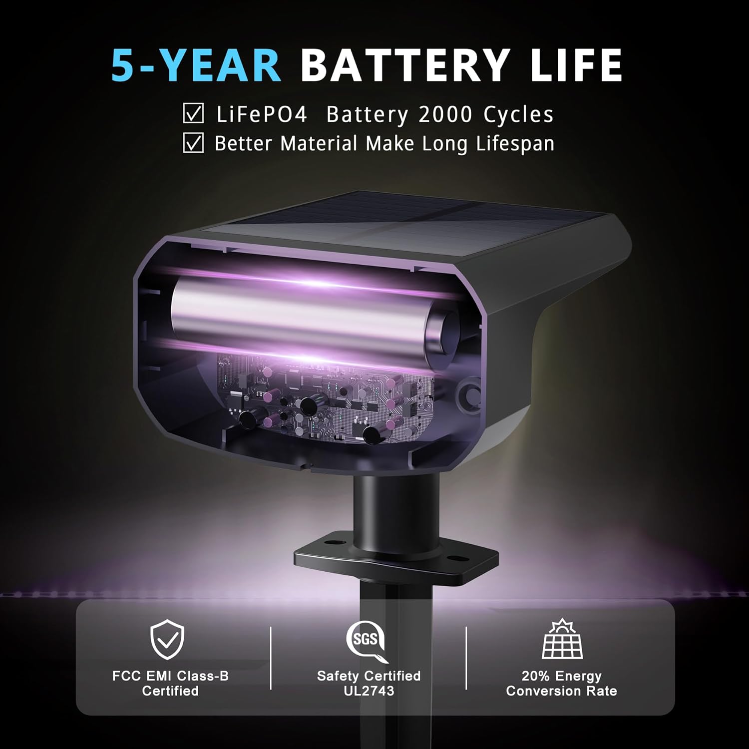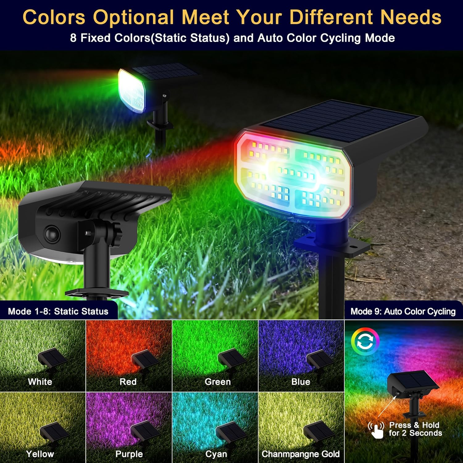 Super Bright Solar Spot Lights - 6 Pack, Waterproof IP65, 2 Color Temperatures, 4 Modes for Outdoor Landscape